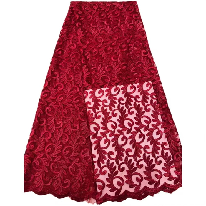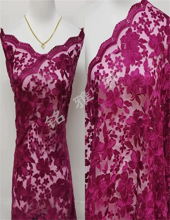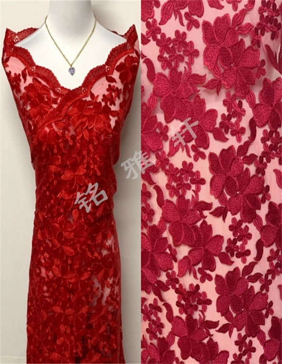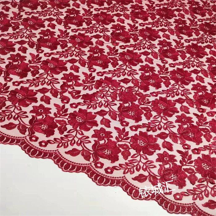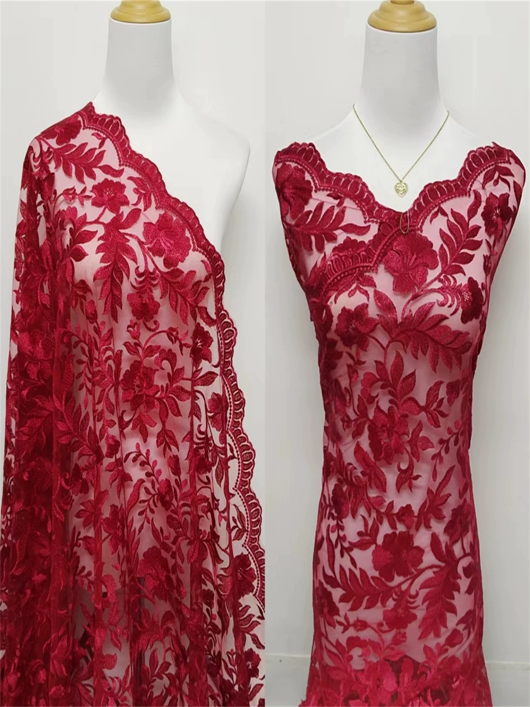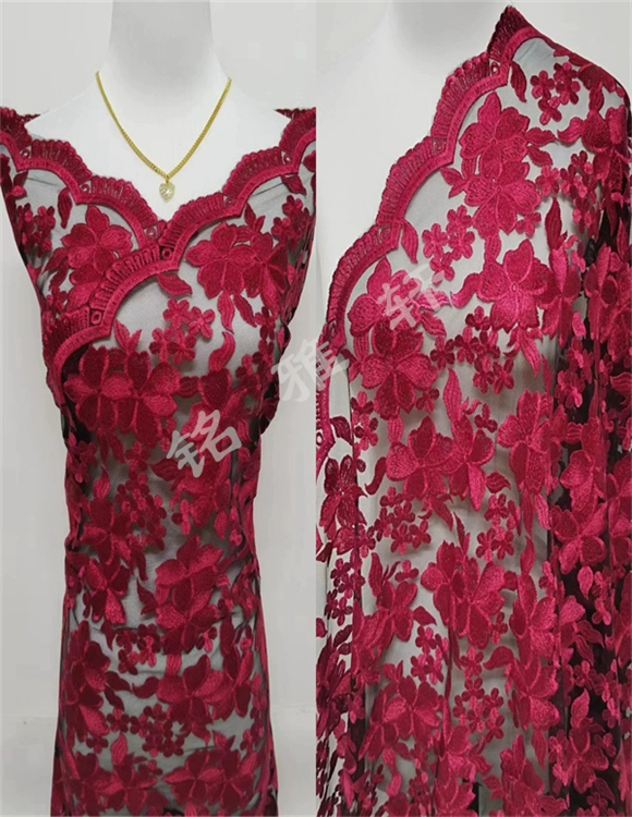 | nameOriginal | New high-end burgundy water-soluble lace mesh embroidered fabric three-dimensional hollow dress cheongsam dress fabric |