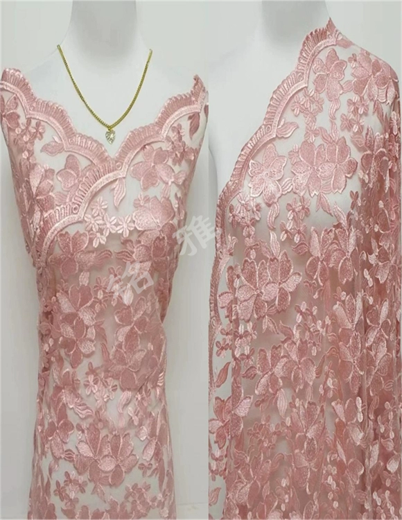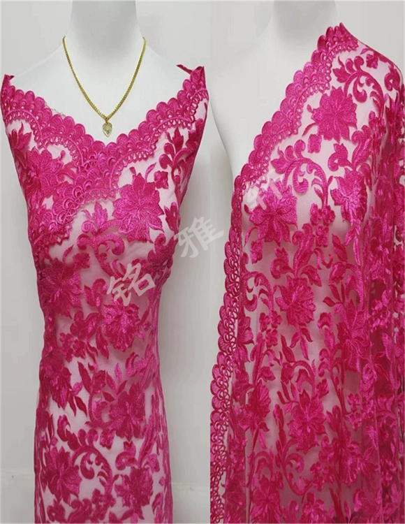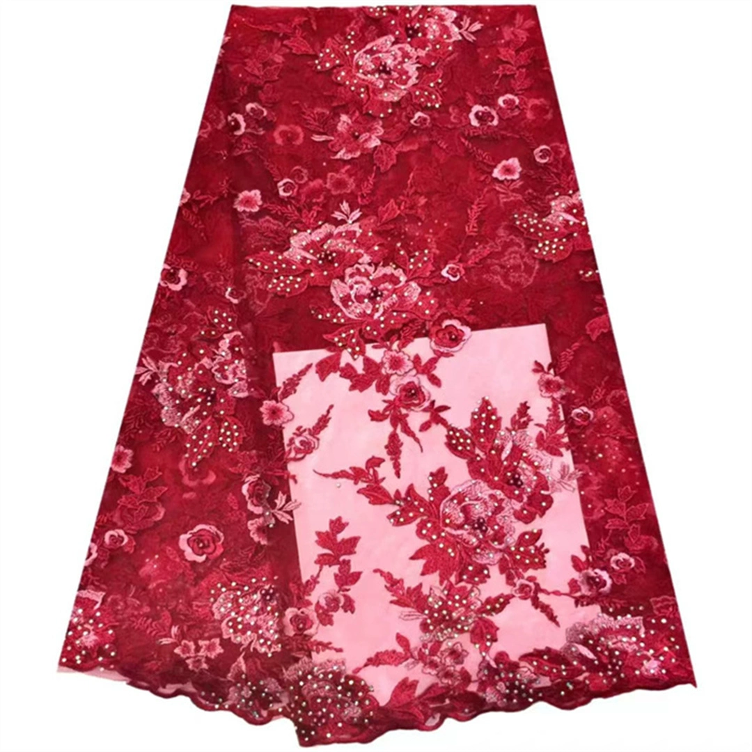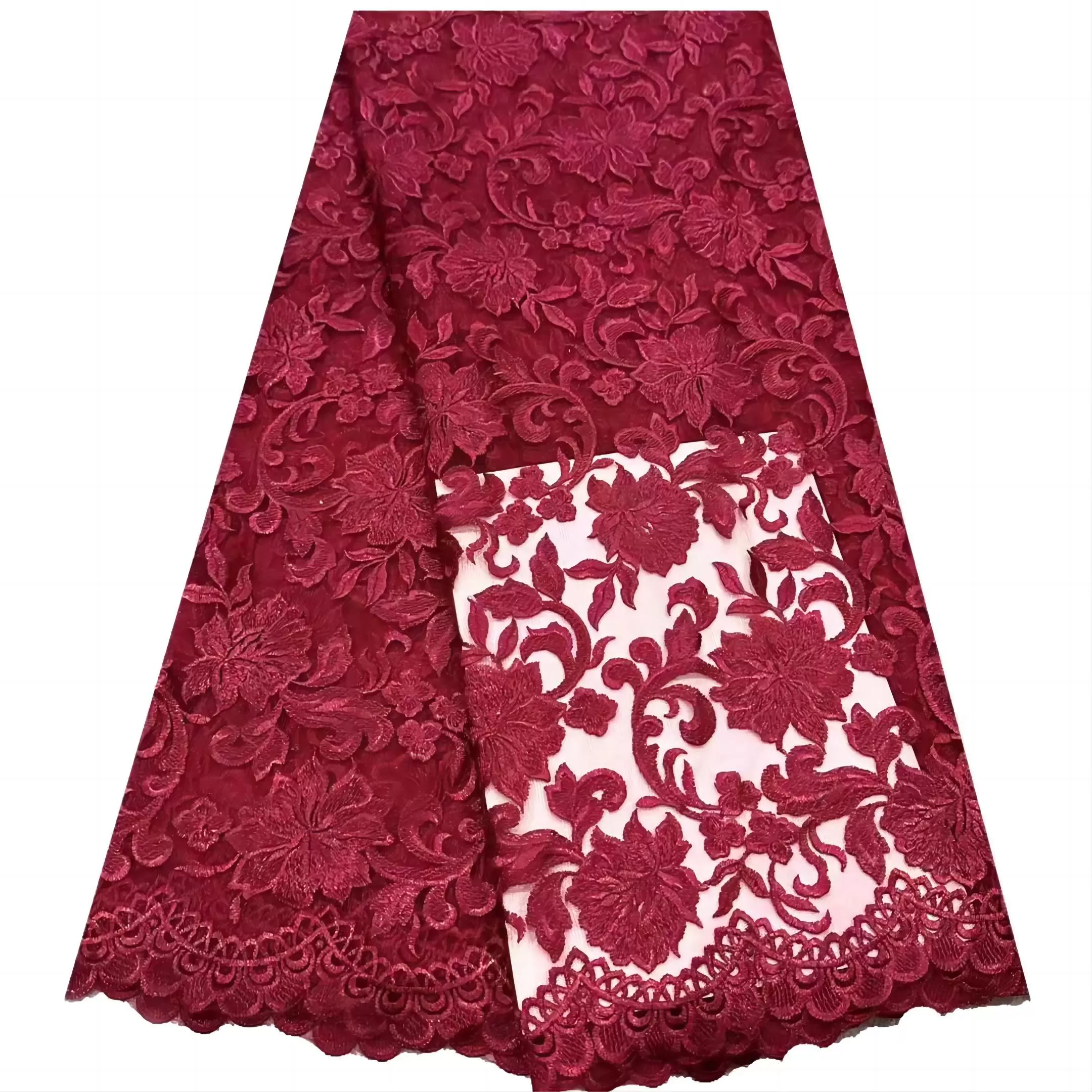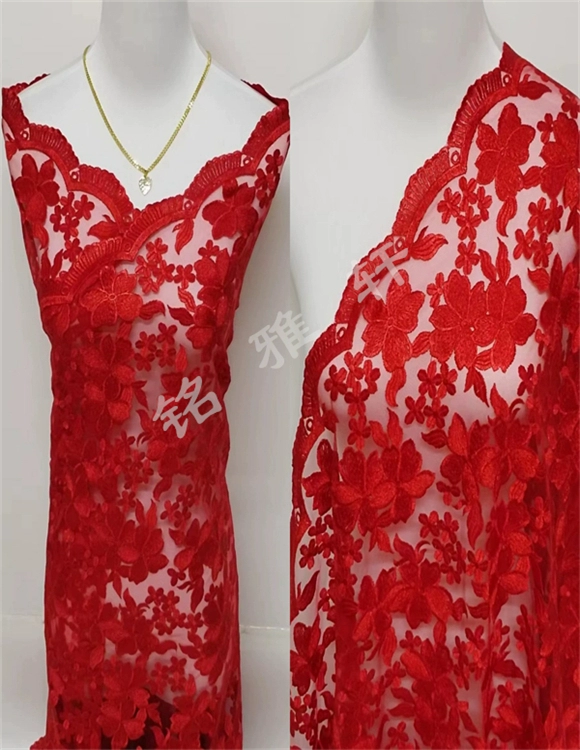 | nameOriginal | New high-end burgundy water-soluble lace mesh embroidered fabric three-dimensional hollow dress cheongsam dress fabric |