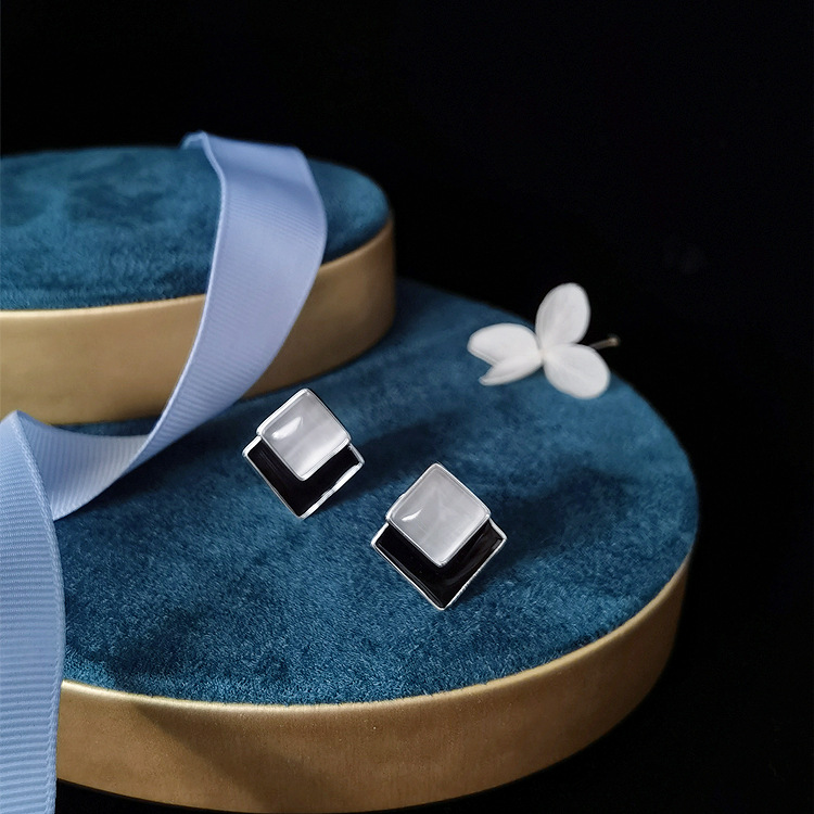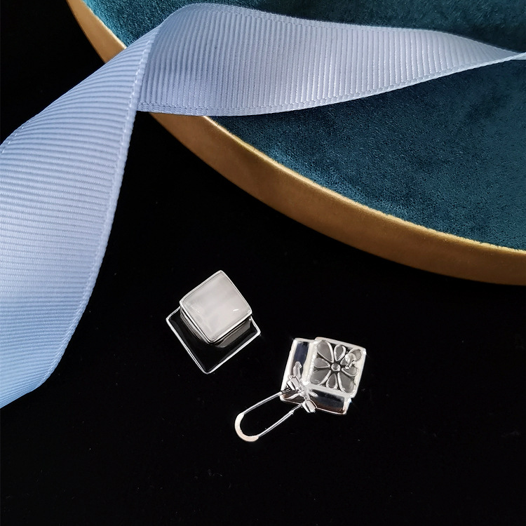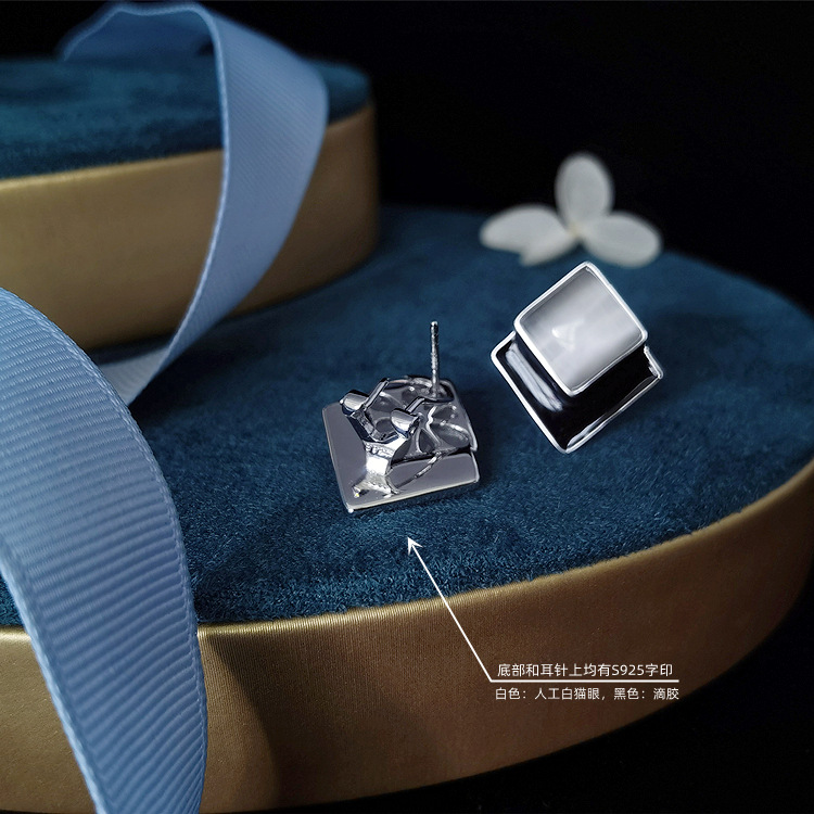 New High-end Light Luxury Silver Jewelry S925 Tremella Buckle Diamond Atmospheric White Cat’s Eye Ear Clip Retro Women’s Style