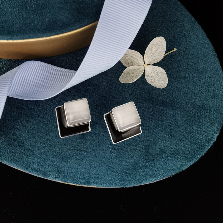 New High-end Light Luxury Silver Jewelry S925 Tremella Buckle Diamond Atmospheric White Cat's Eye Ear Clip Retro Women's Style