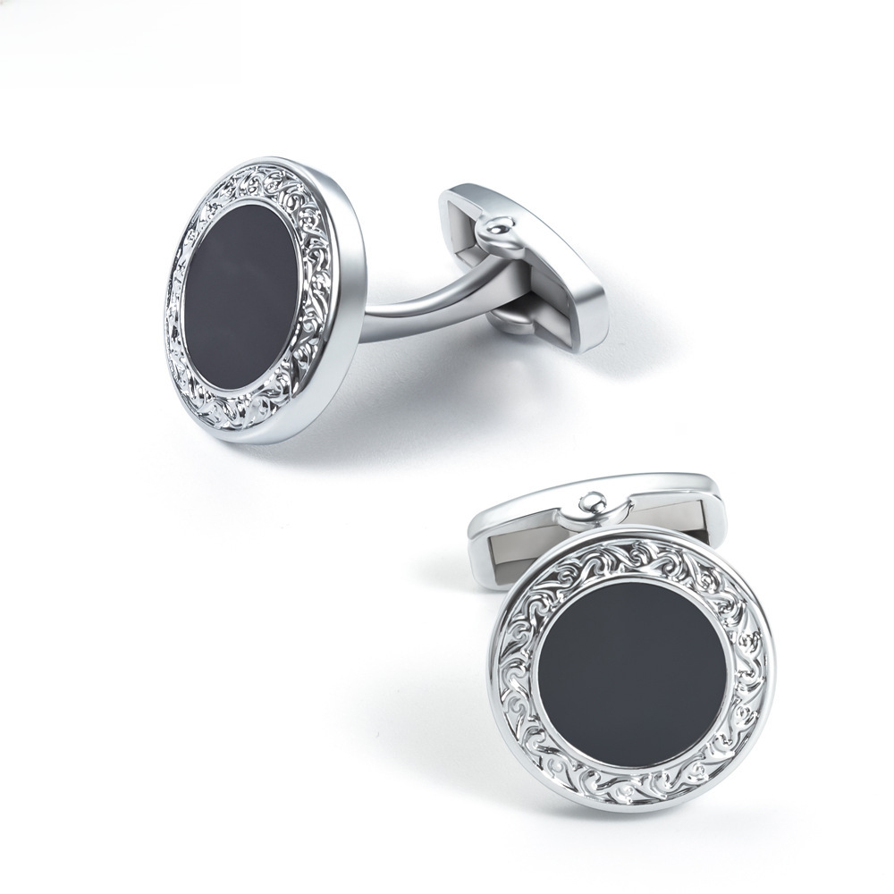 New high-end men’s French shirt cufflinks cross-border Amazon for fashionable versatile round enamel cufflinks