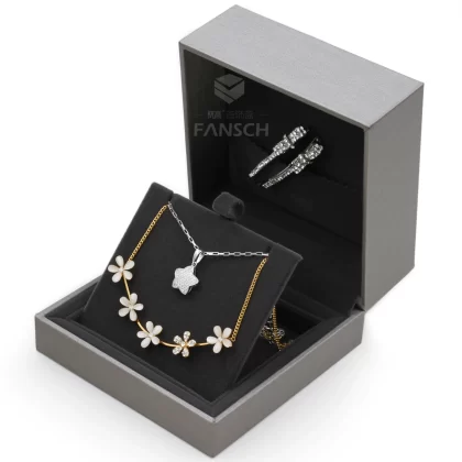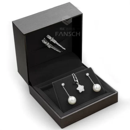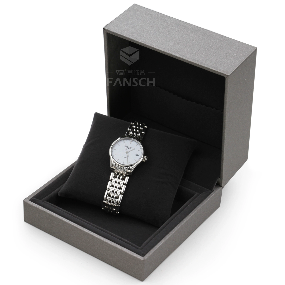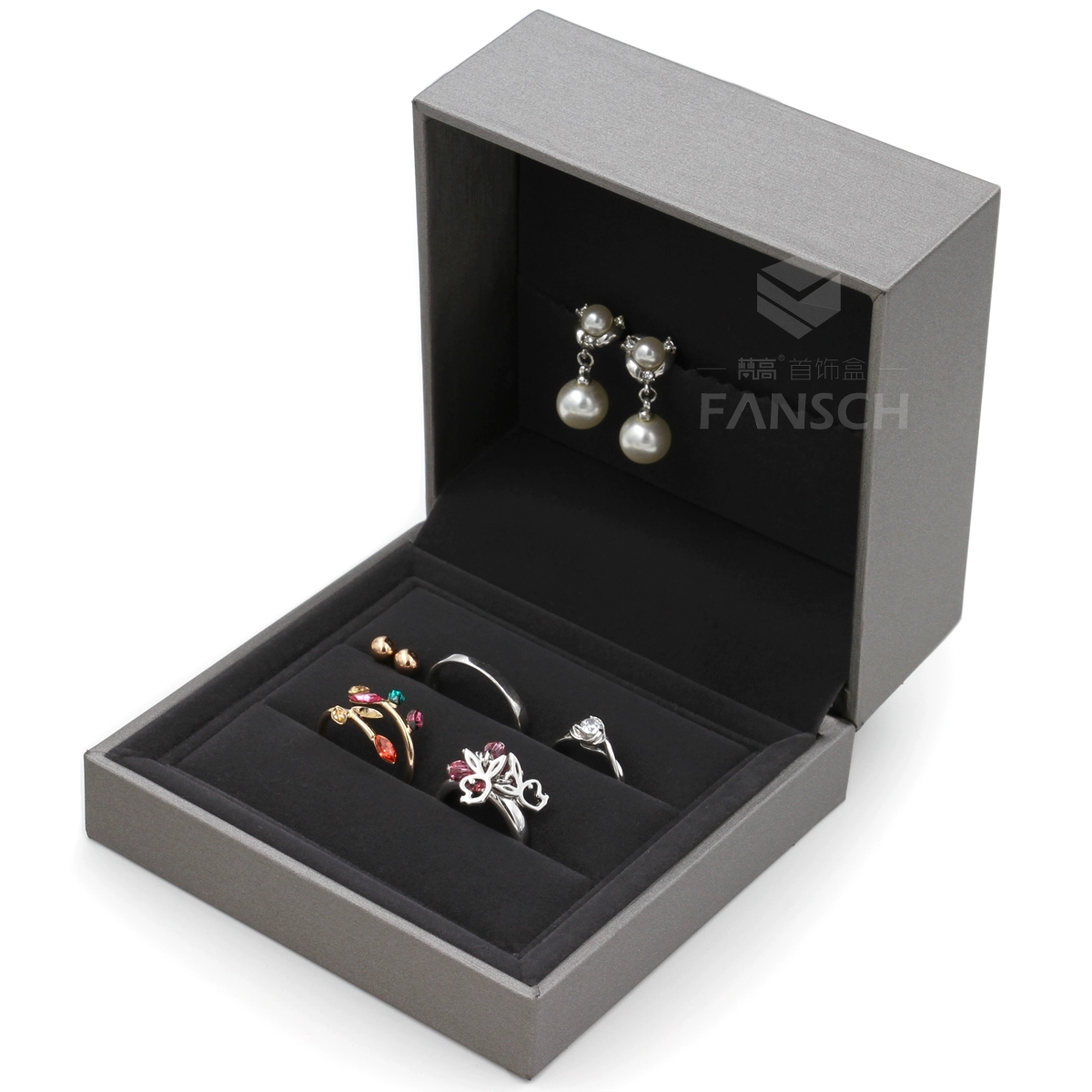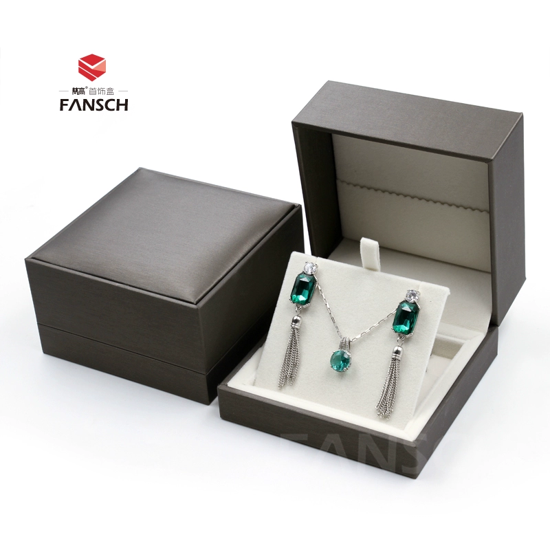 New high-end silver gray brushed PU leather jewelry storage box storage box watch box necklace box jewelry box jewelry box