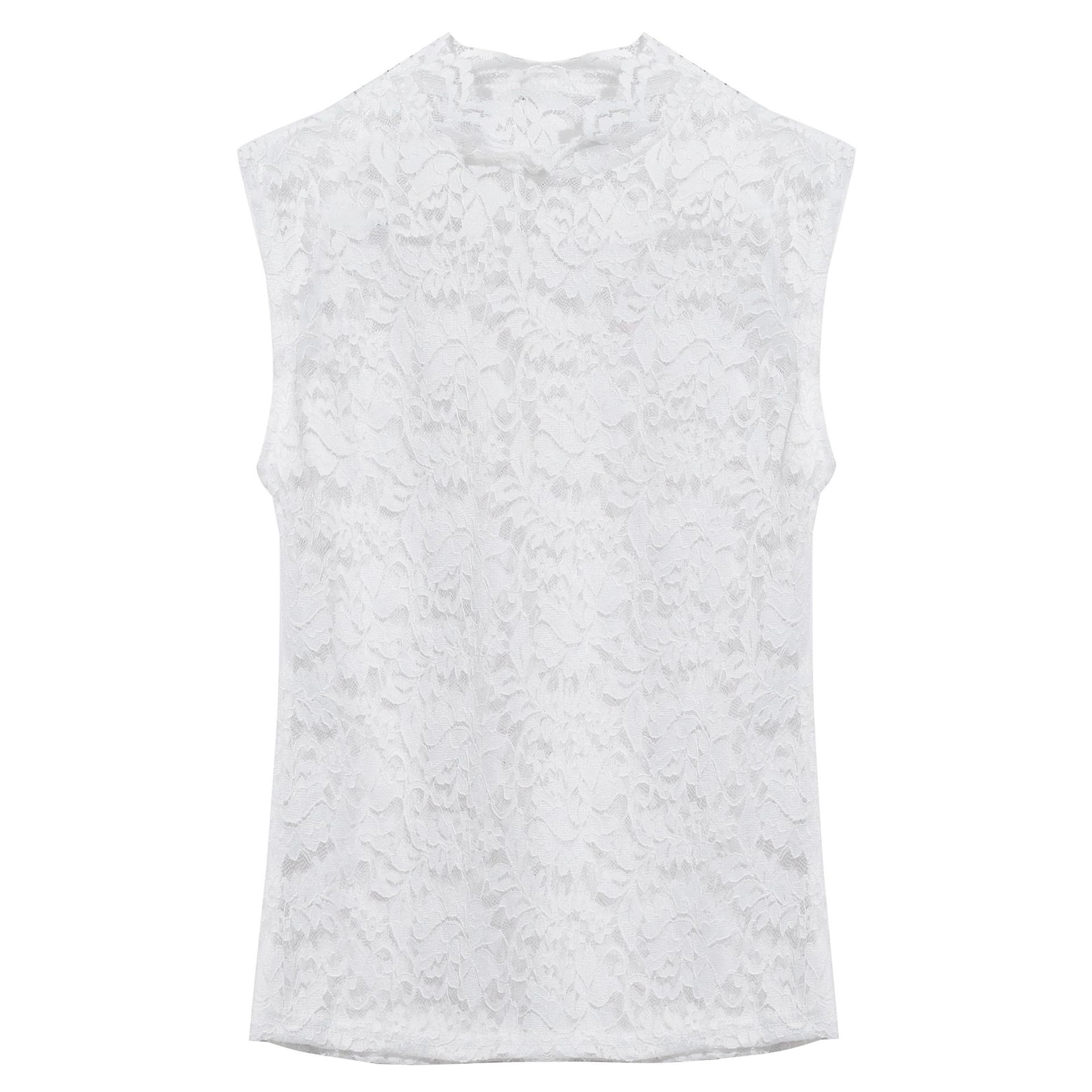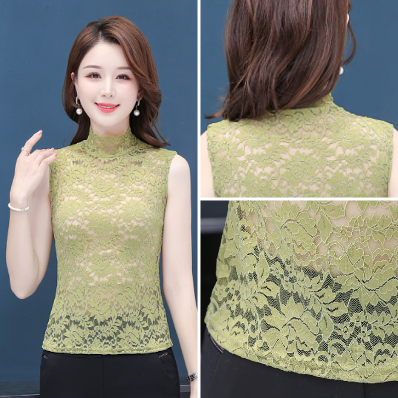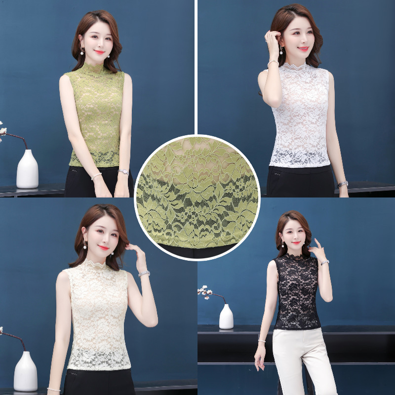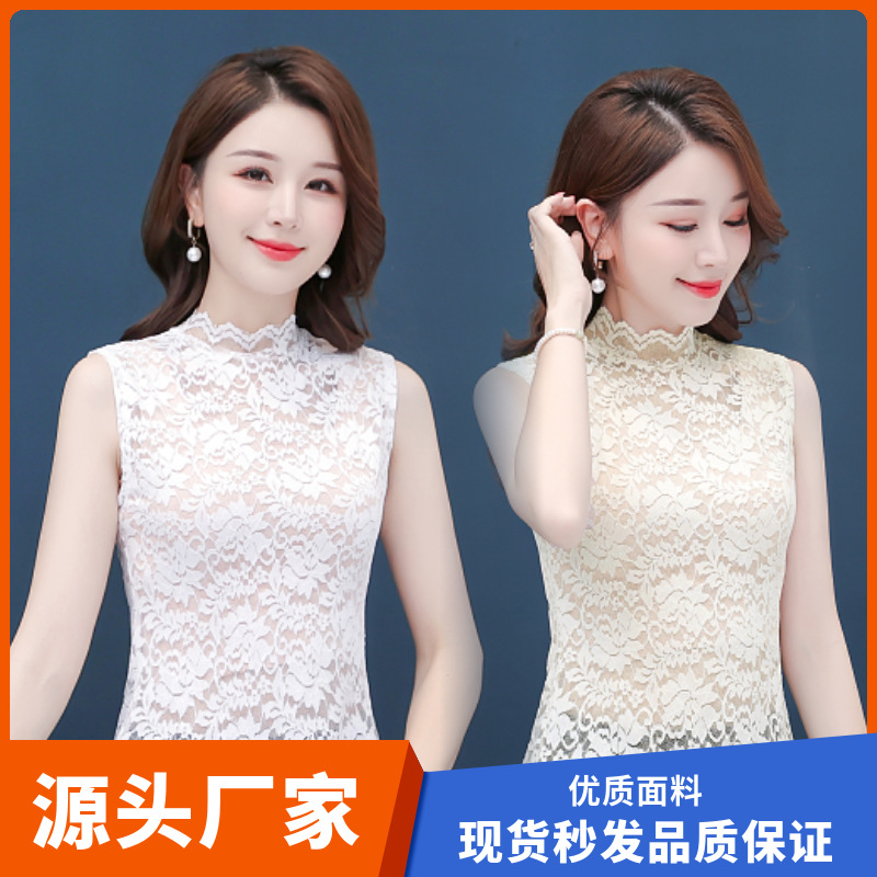 New High Quality Fabric Mock Collar Lace Shirt Sleeveless Elegant Commuter Pullover Stylistics Base Lace Vest