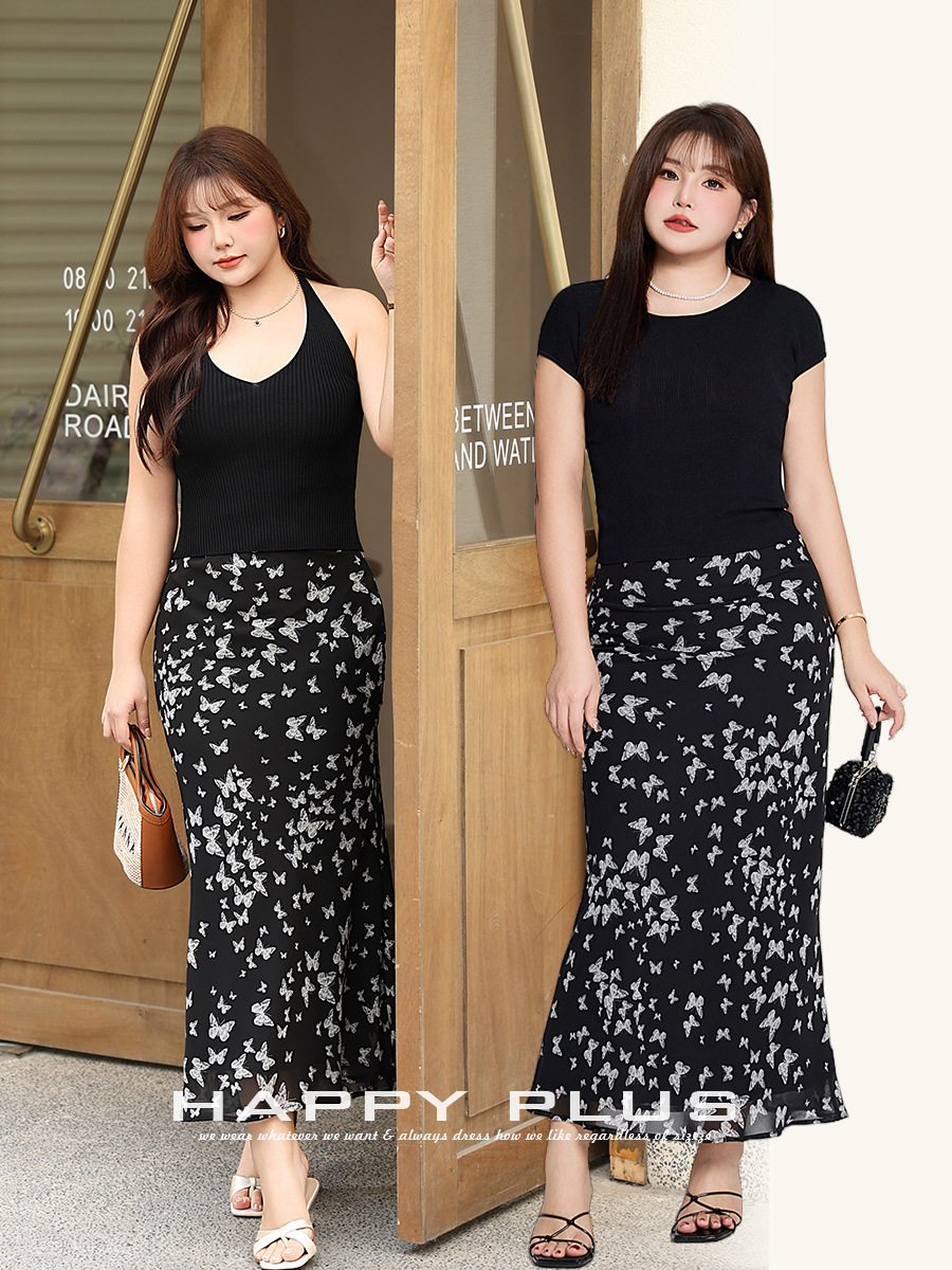 | nameOriginal | New High Waist Butterfly Printed Chiffon Mid-Length Skirt Moisturizing Its 8852 plus size Retro High Waist Hip Printed Half |