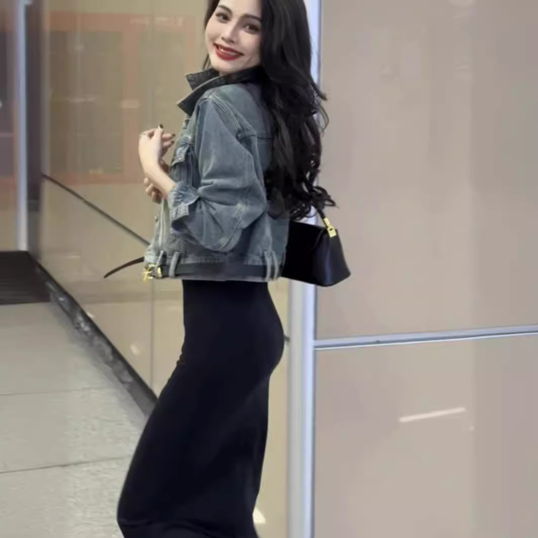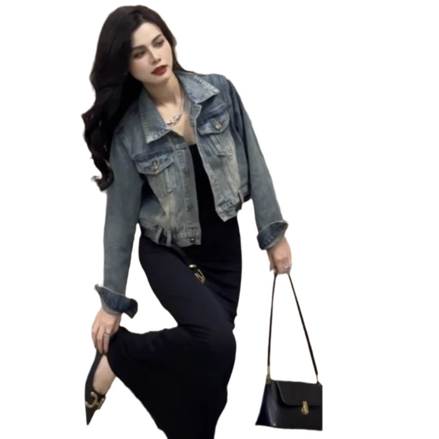 | nameOriginal | New Hong Kong Style Vintage Distressed Washed Denim Jacket Women's Spring and Autumn Fashion Unique Chic Loose Short Jacket for Women |