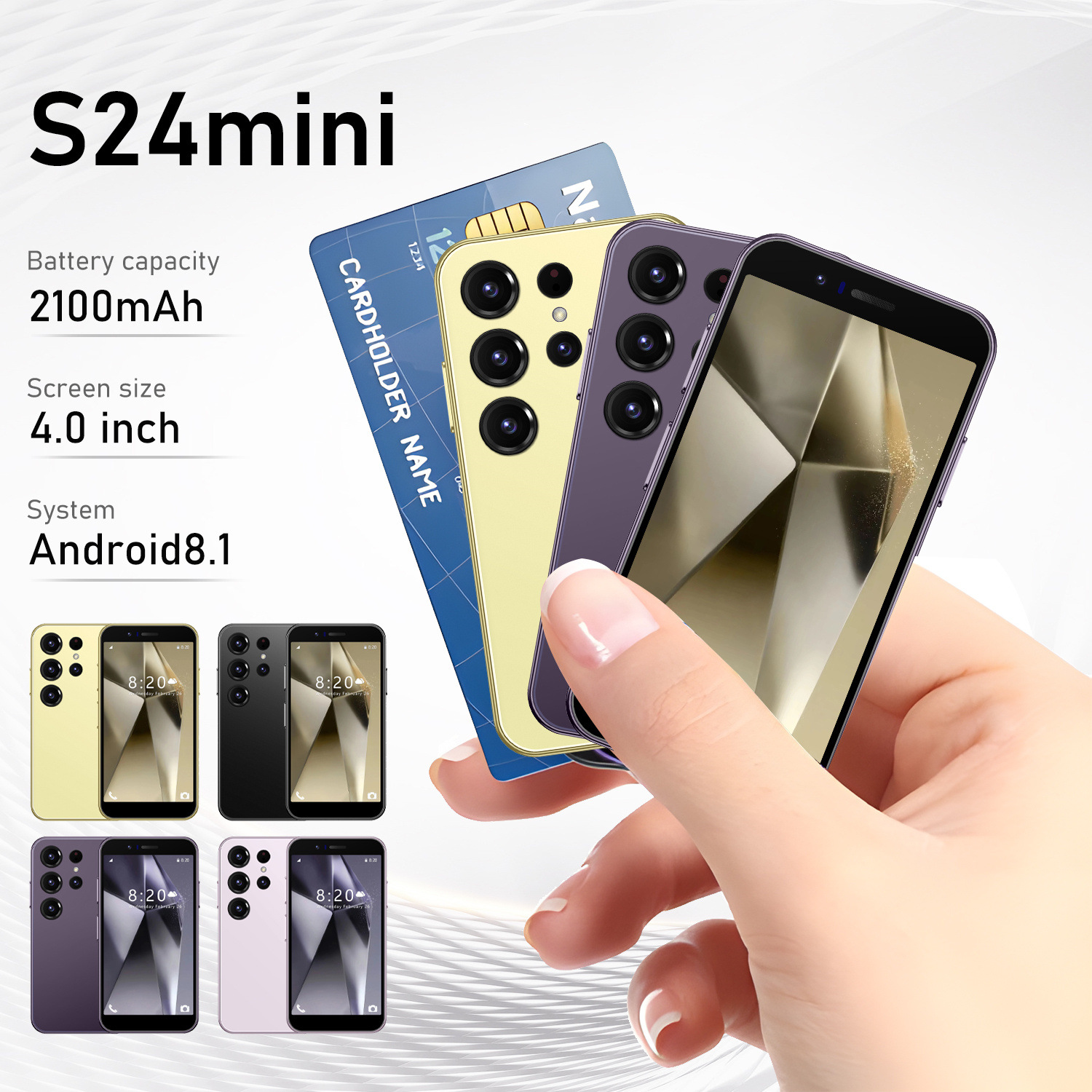 | nameOriginal | New hot selling S24 mini cross border mobile phone dual SIM card 4.0 inch Android 8.1 mini smart card phone |
