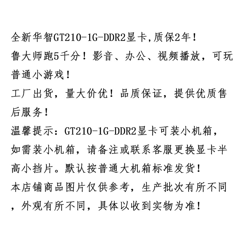 New Huizhi GT210 1GB DDR2 small case semi-high small game PCI-E dual-screen graphics card 2-year replacement
