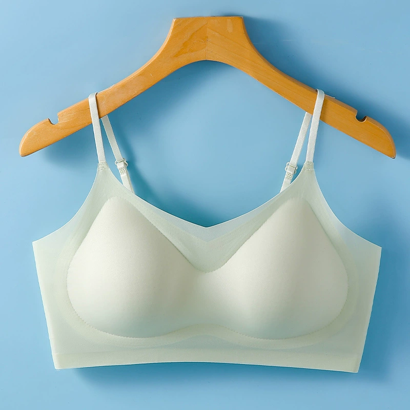 | nameOriginal | New ice silk beautiful back camisole style women's wire-free push-up fixed cup thin seamless sleep bra |