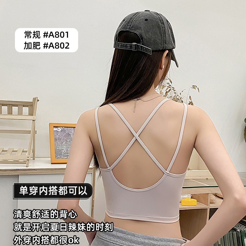 | nameOriginal | New Ice Silk Camisole Women's Underwear with Chest Pad Inner Wear Outer Wear Sexy Cross Fixed Cup Beautiful Back Bra Summer |