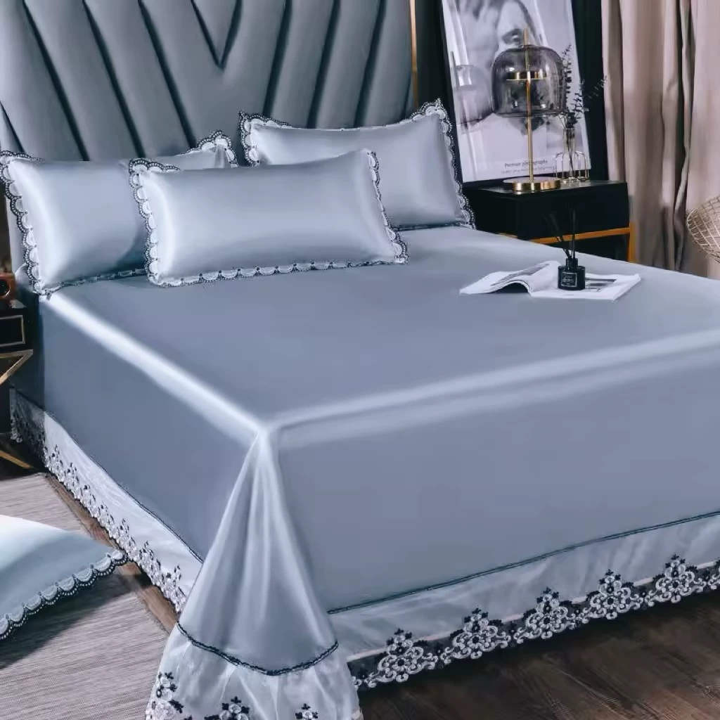 | nameOriginal | New ice silk mat three-piece summer air-conditioned mat soft mat lace bed simple gray washable |
