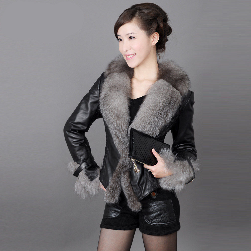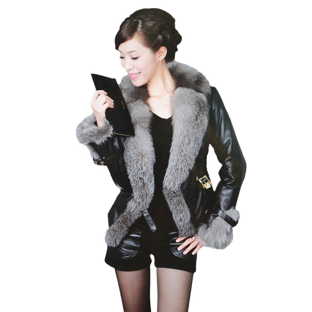 New imitation fox fur collar fur short leather pu stitching padded cotton-padded 2021 autumn and winter slim-fit coat women’s clothing