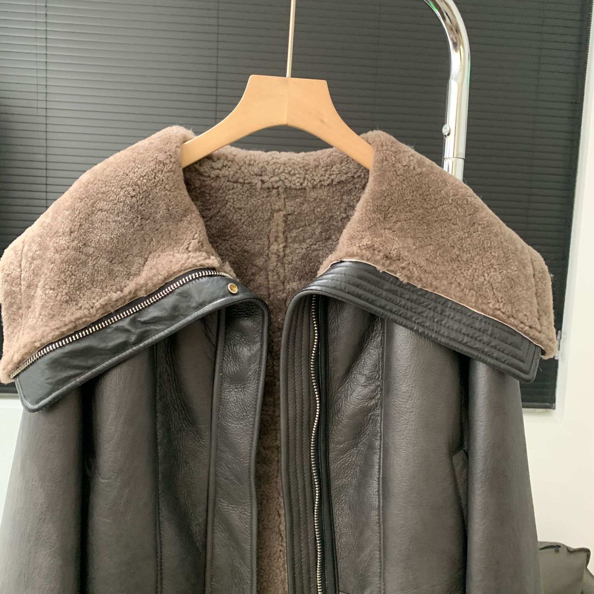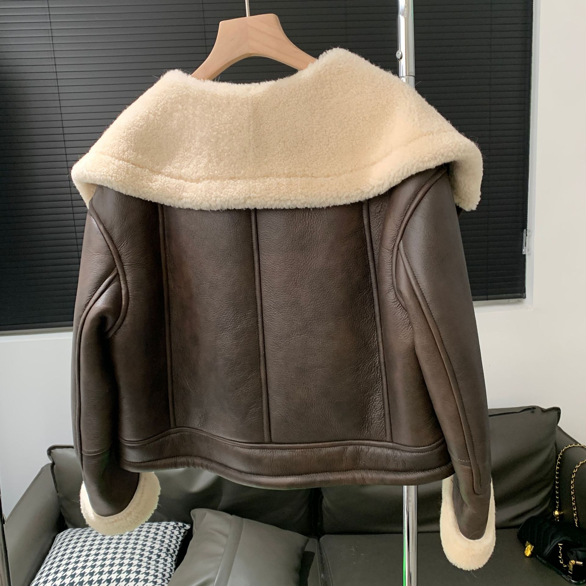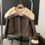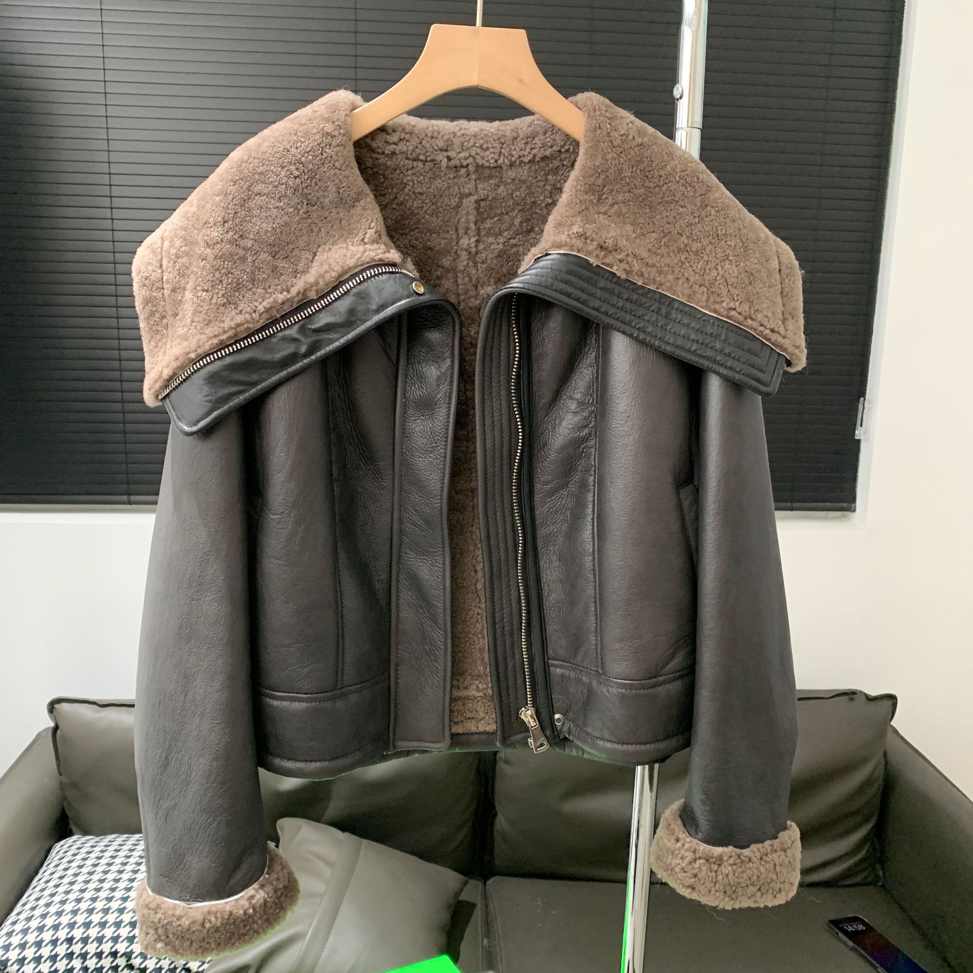 New Imported Merino Fur One Motorcycle Leather Jacket Short Winter Lambswool