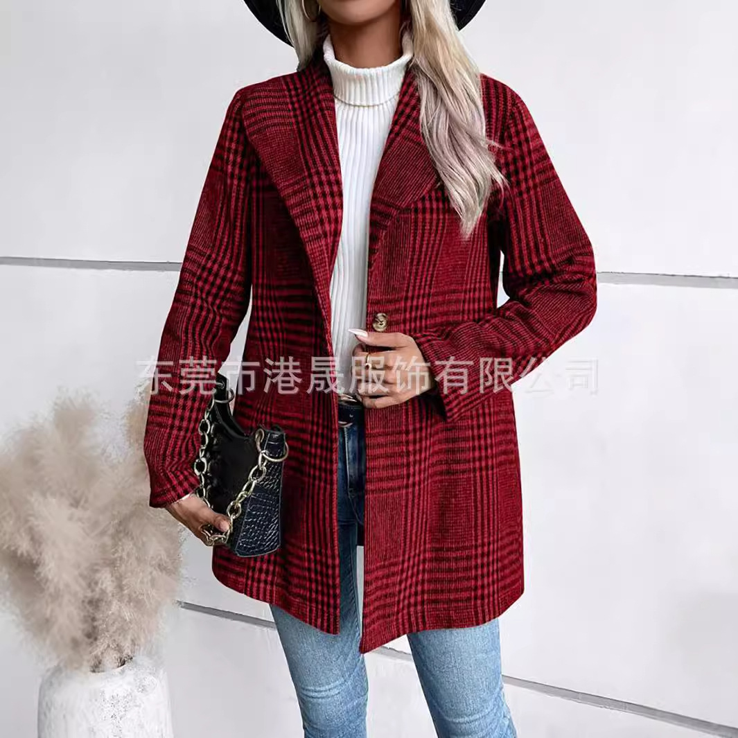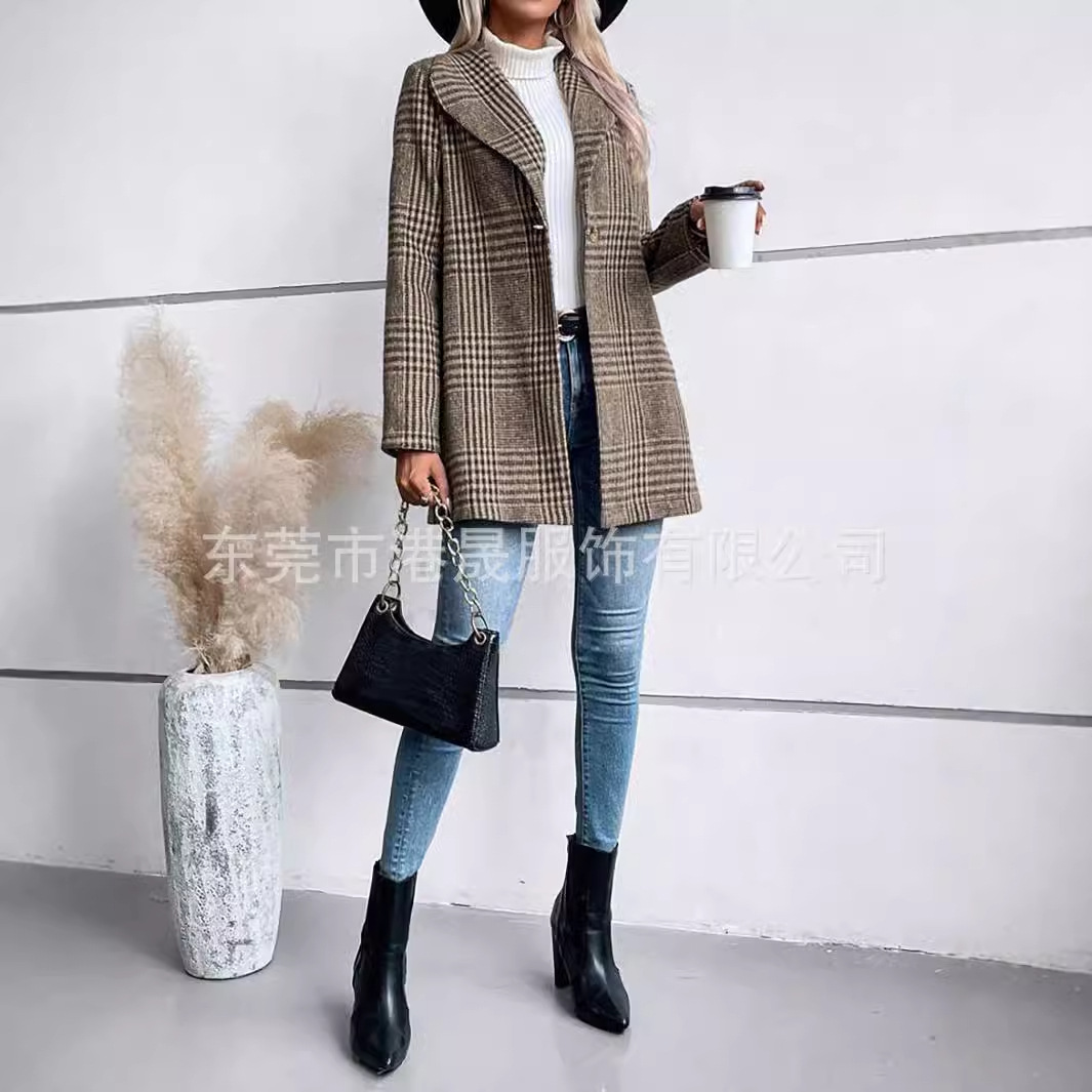 | nameOriginal | New Independent Station Tiktok2024 Autumn and Winter European and American Women's Lapel Woolen Plaid Jacket Slim-fit Elegant Coat |