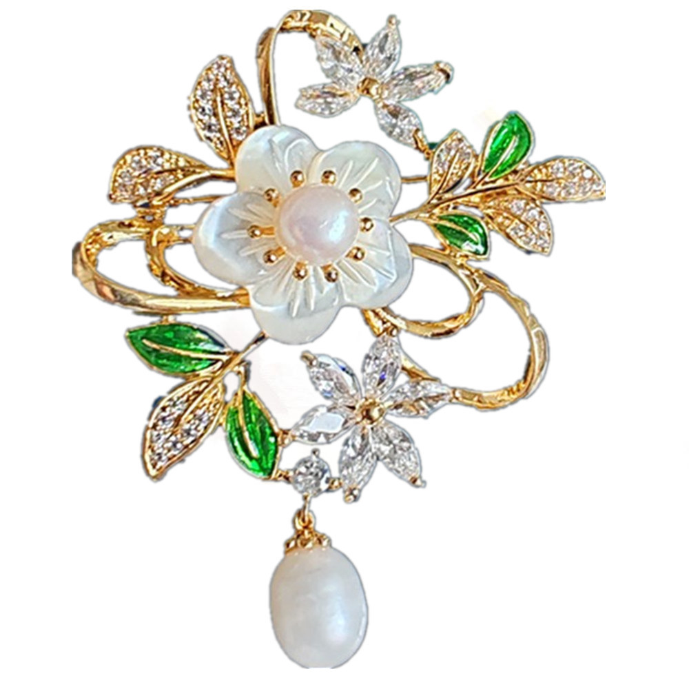 | nameOriginal | New inlaid freshwater shell flower tassel brooch women's high-end sense niche Joker clothing accessories factory wholesale |