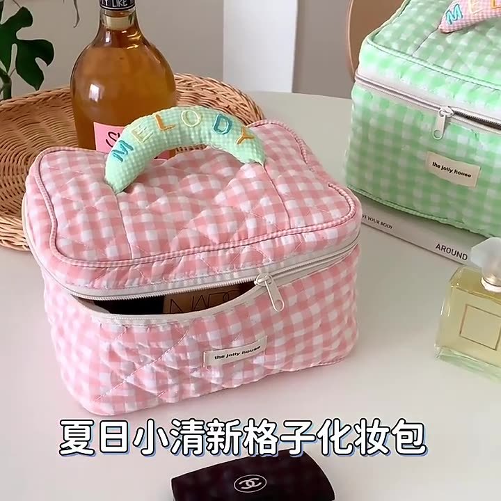| nameOriginal | New ins style plaid cosmetic bag large capacity high-end sense cute portable high-value storage bag a batch |