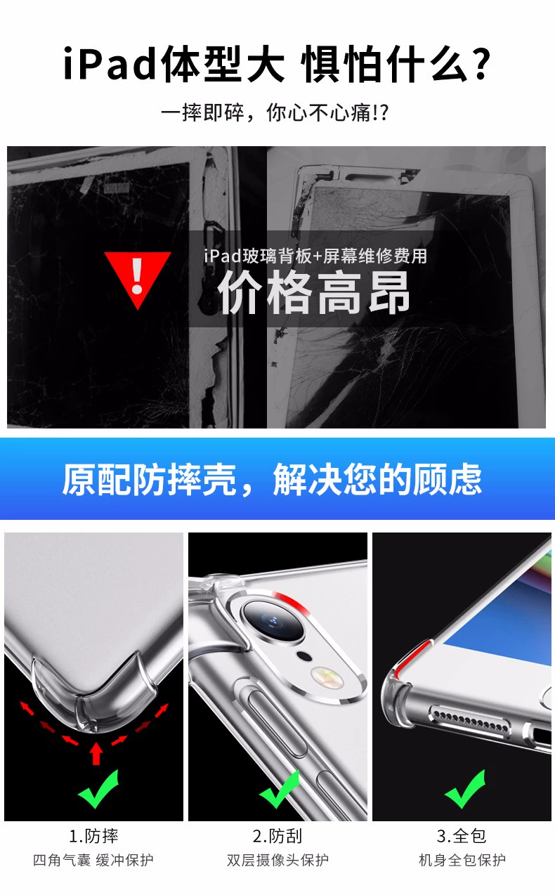 New ipad 2020 protective case transparent hard shell soft edge Pro11 inch old Pro12.9 protective case a1584 air bag 2 anti-fall air4/3 silicone pro 9.7 soft shell 10.5 mini 10.2