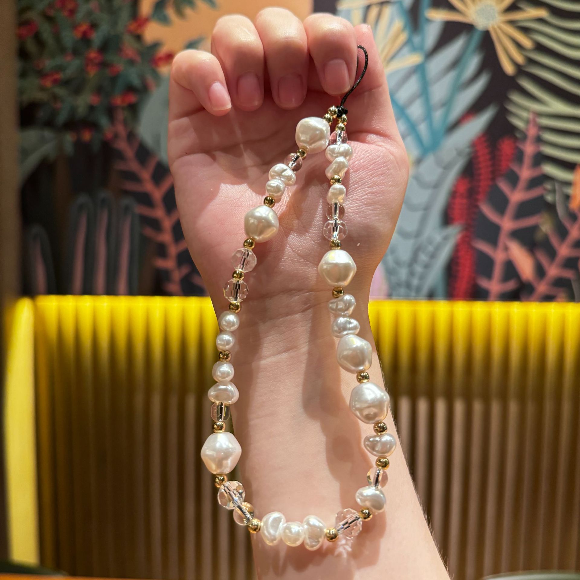 New Japanese and Korean Light Bead Facet Simulation Bead Acrylic Crystal Mobile Phone Chain Flash Mobile Phone Chain Pendant Thin Flash Keychain