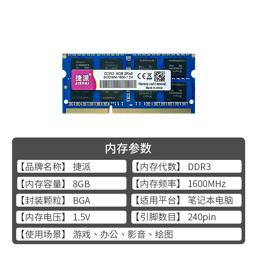 | nameOriginal | New Jetcard Notebook DDR3L 8G 1600 1.35V Notebook Memory Sold Compatible with Standard Pressure |