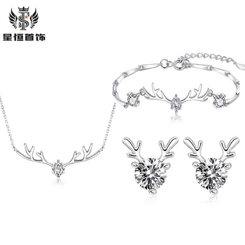 New jewelry set Europe and the United States a deer you clavicle chain antlers Hao stone earrings female Internet-famous fashion Korean bracelet