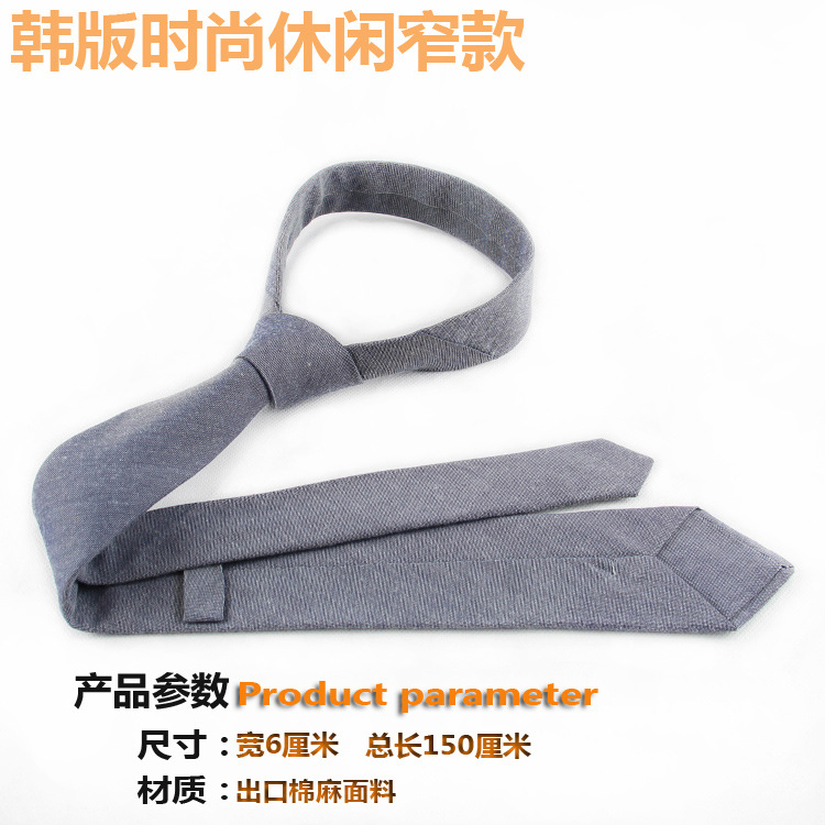 | nameOriginal | New Korean casual tie solid color cotton denim versatile high-end men's narrow tie wedding banquet wholesale |