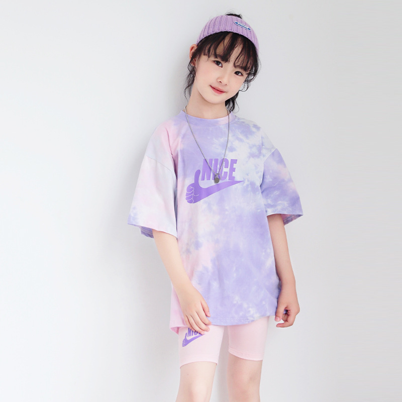| nameOriginal | New Korean Girls' Short-sleeved Pants Set Tie-dyed Letter Big Children's Two-piece Set Big Children's Suit for Cross-border Distributor |