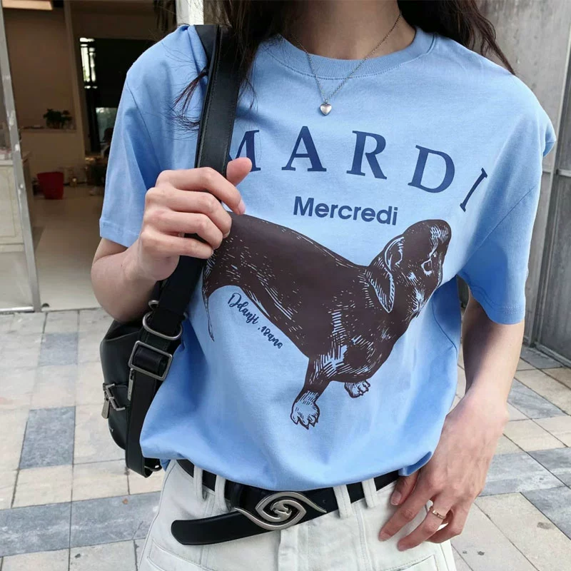 | nameOriginal | New Korean Mardi short-sleeved Daisy T-shirt for women Dachshund loose gold and silver star same style niche trendy brand |