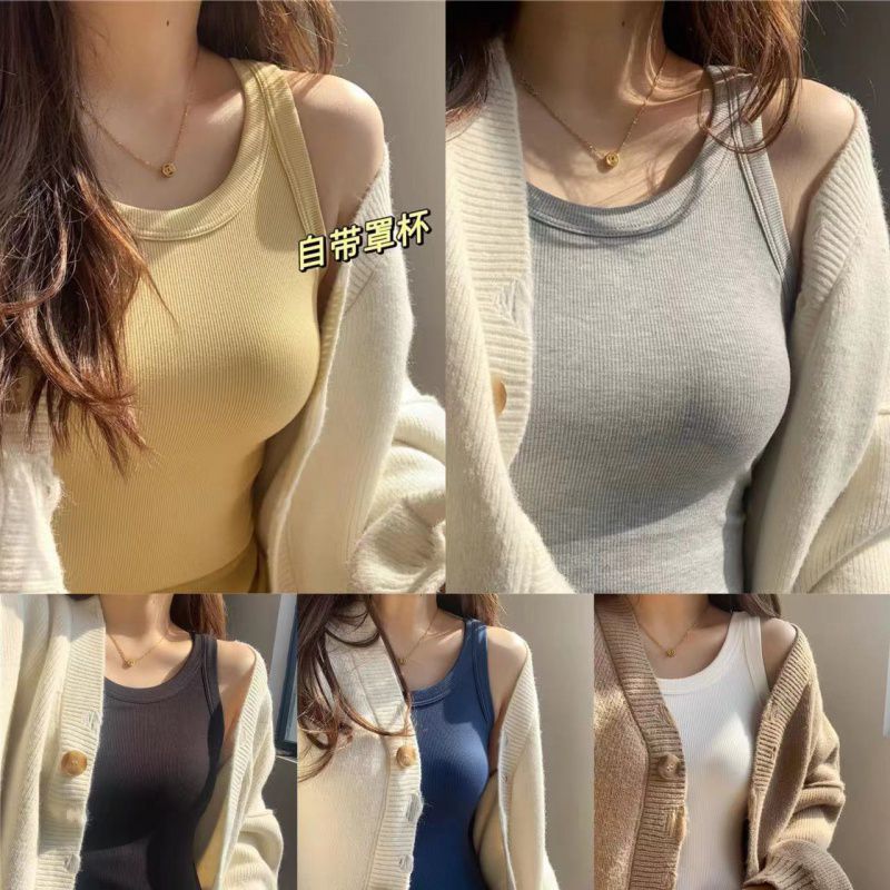 | nameOriginal | New Korean Society Threaded Camisole Women's Belt Chest Pad Integrated Cup Inner Summer Base Shirt Outer Wear Solid Color Top |