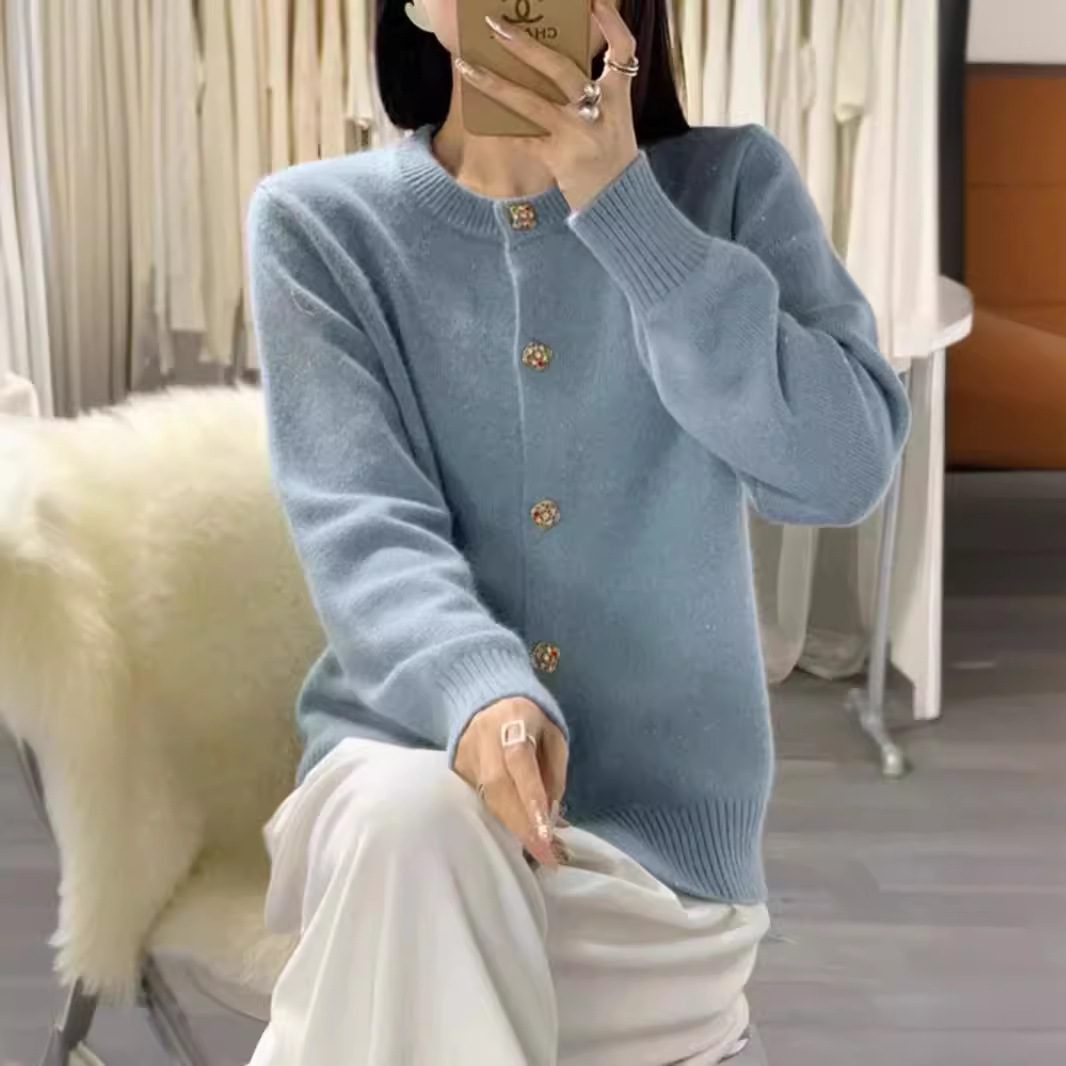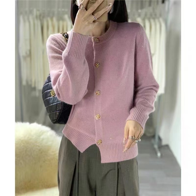 | nameOriginal | New Korean Solid Color Crewneck Jewel Buckle Loose Knitted Cardigan Women's Simple Small Fragrance Style Western Style Coat Women's Top |