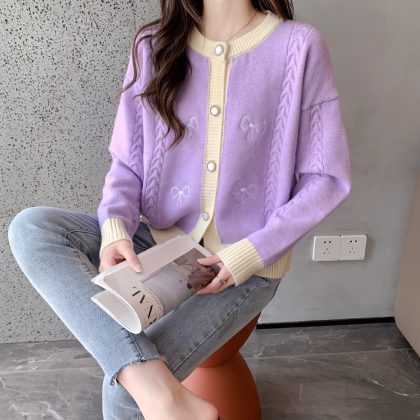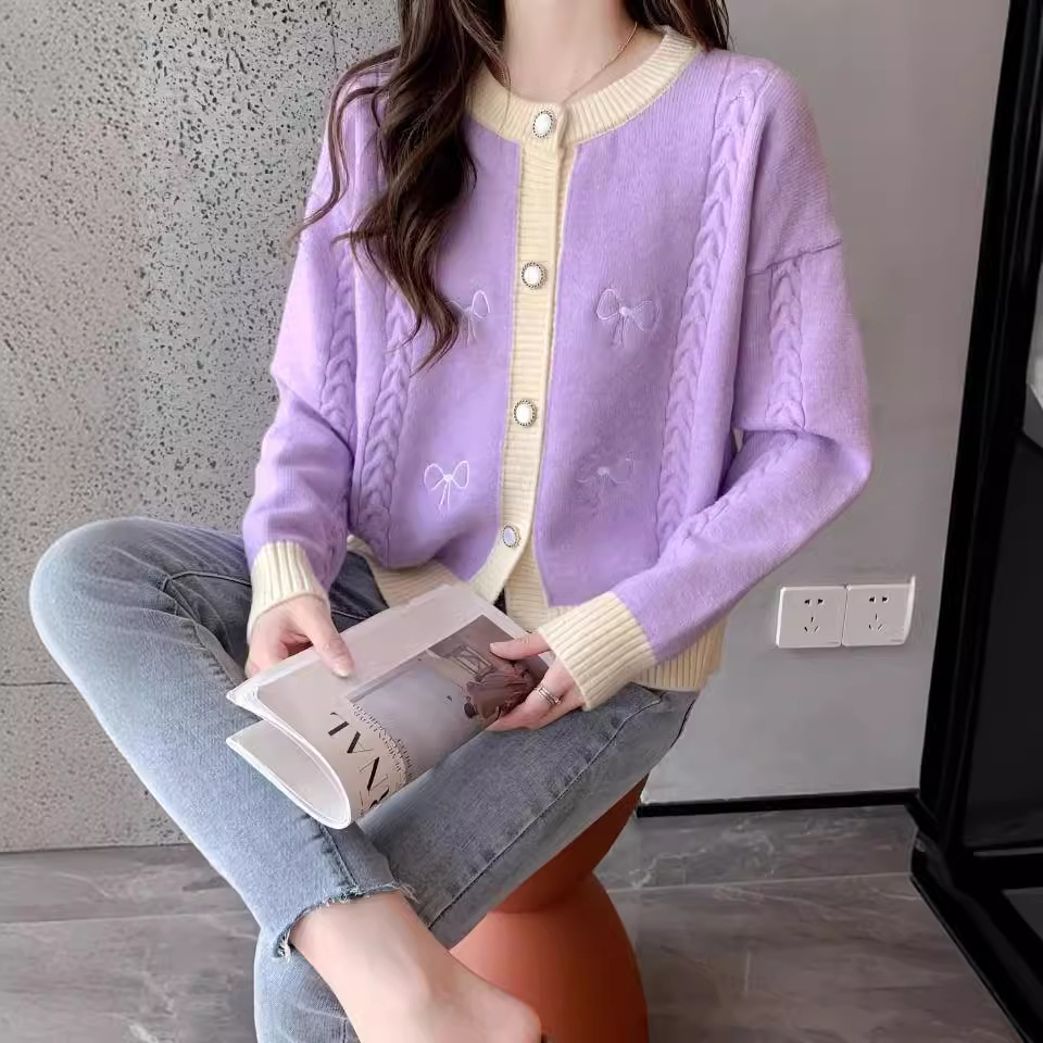 | nameOriginal | New Korean Style Autumn and Winter Fashion Sweater Women's Crewneck Long Sleeve Bow Color-matching Casual Knitwear Women's Coat Top |