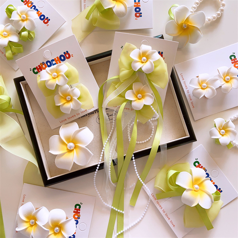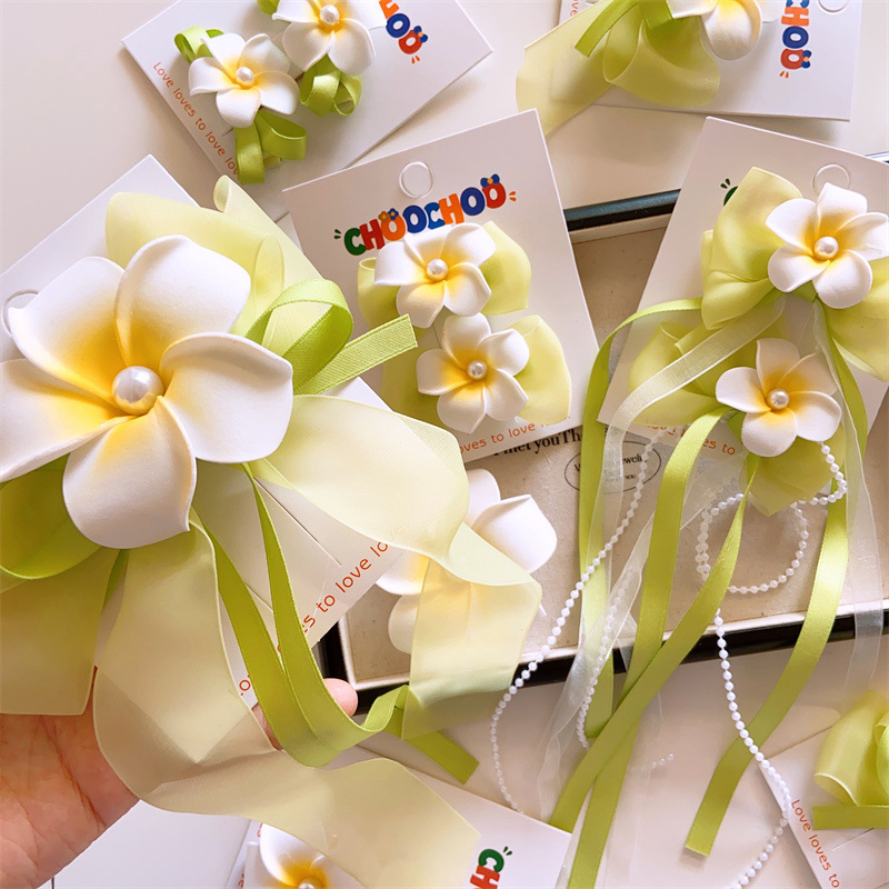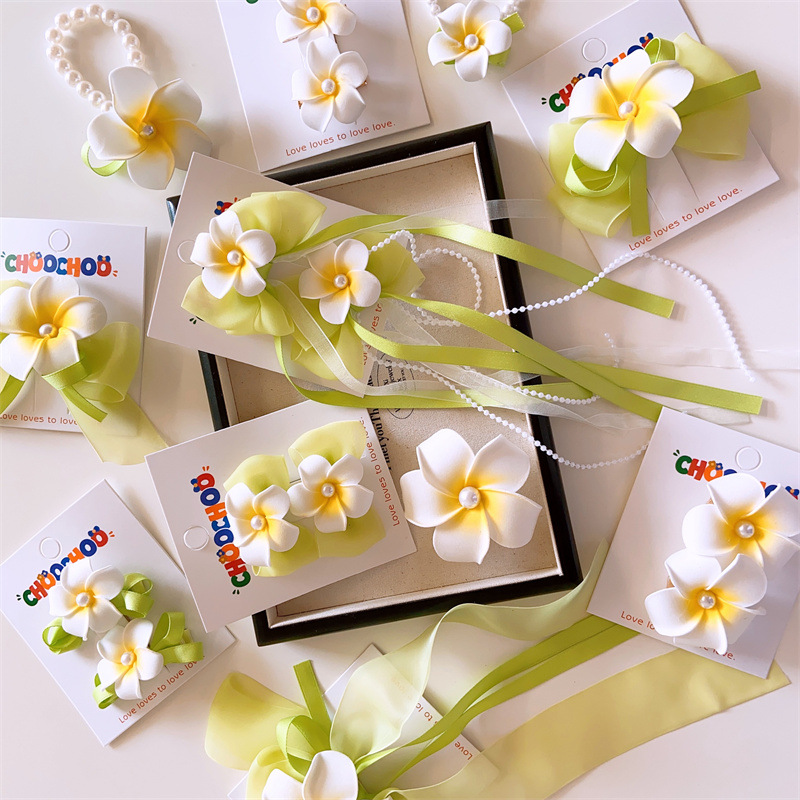 | nameOriginal | New Korean style children's spring green flower hairpin girls seaside holiday hair accessories parent-child Pearl Hair ring rope |