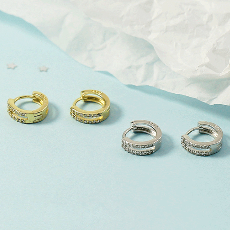 | nameOriginal | New Korean Style Fashion Full Diamond Double Rai Diamond Ear Ring Ear Buckle Ear Bone Ring Women's Exquisite Earrings Simple All-match |