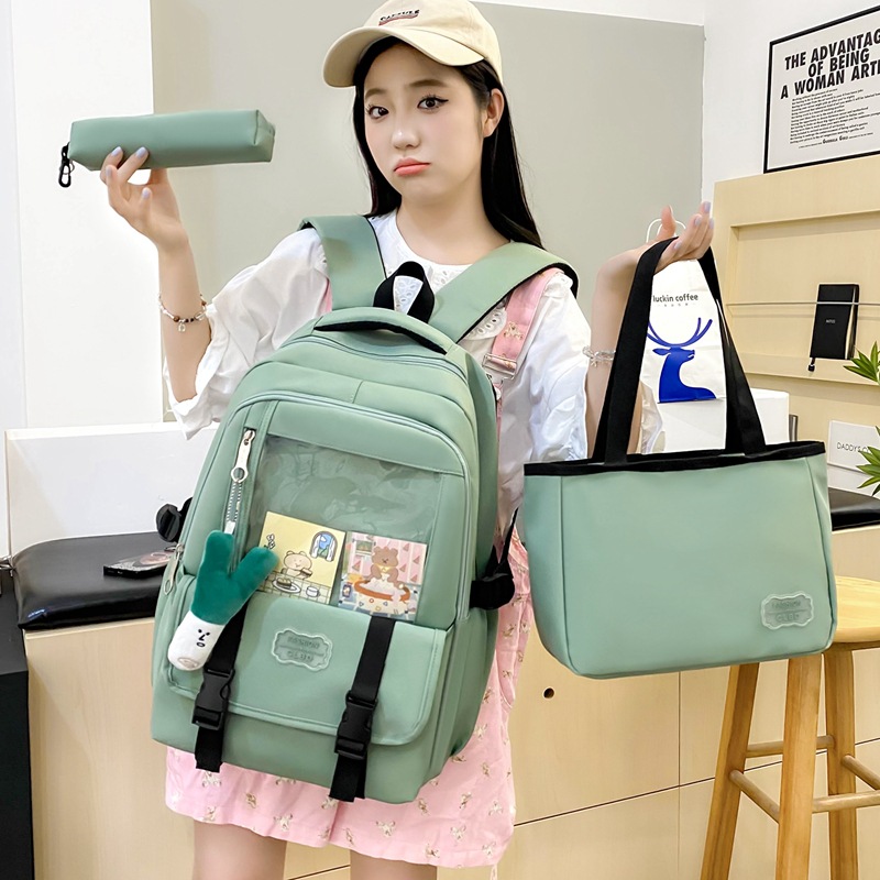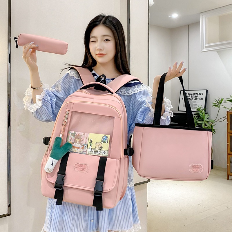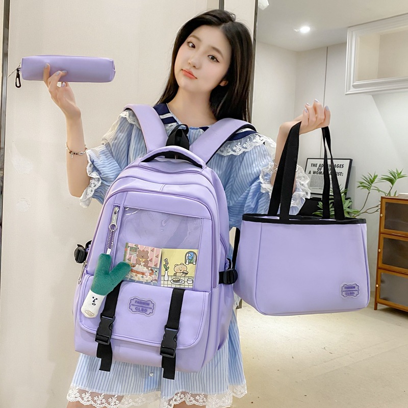New Korean Style Fresh Style Backpack Nylon Large Capacity Junior Senior high school Schoolbag Three-Piece Multi-Use Shoulder Bag
