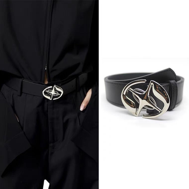 | nameOriginal | New Korean style ins style men's and women's retro fashion fashion all-match niche belt logo metal buckle Black Belt |