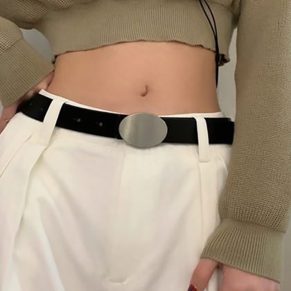 | nameOriginal | New Korean style ins style men's and women's retro fashion fashion all-match niche belt logo metal buckle Black Belt |