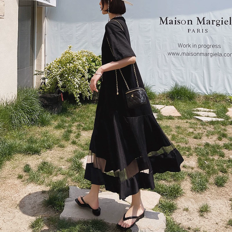 | nameOriginal | New Korean style mesh short-sleeved loose knee-length dress |