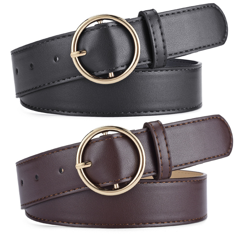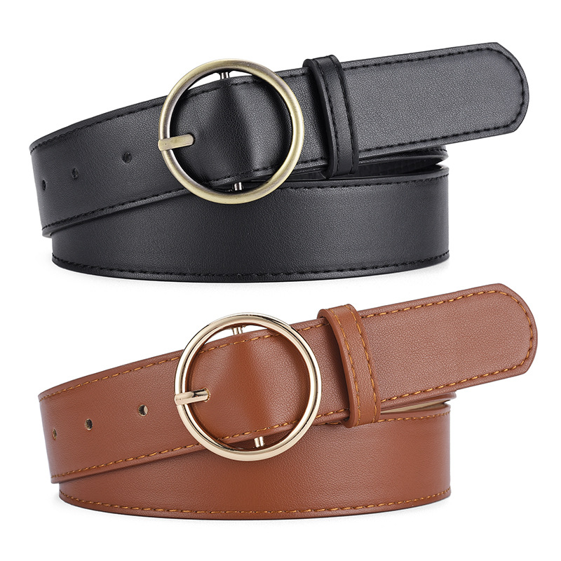 New Korean style personalized round buckle PU leather belt women’s high-end jeans Joker decorative belt spot wholesale