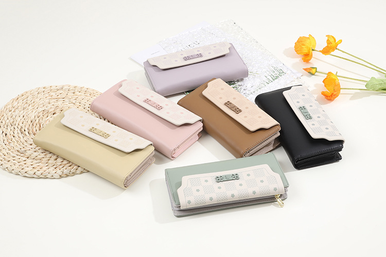 | nameOriginal | New Korean style PU soft pull buckle five-pointed star flip flower folding women's long wallet multi-card female leather |