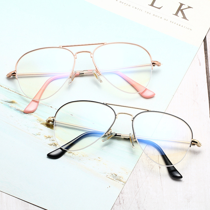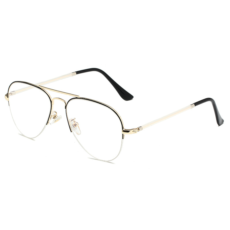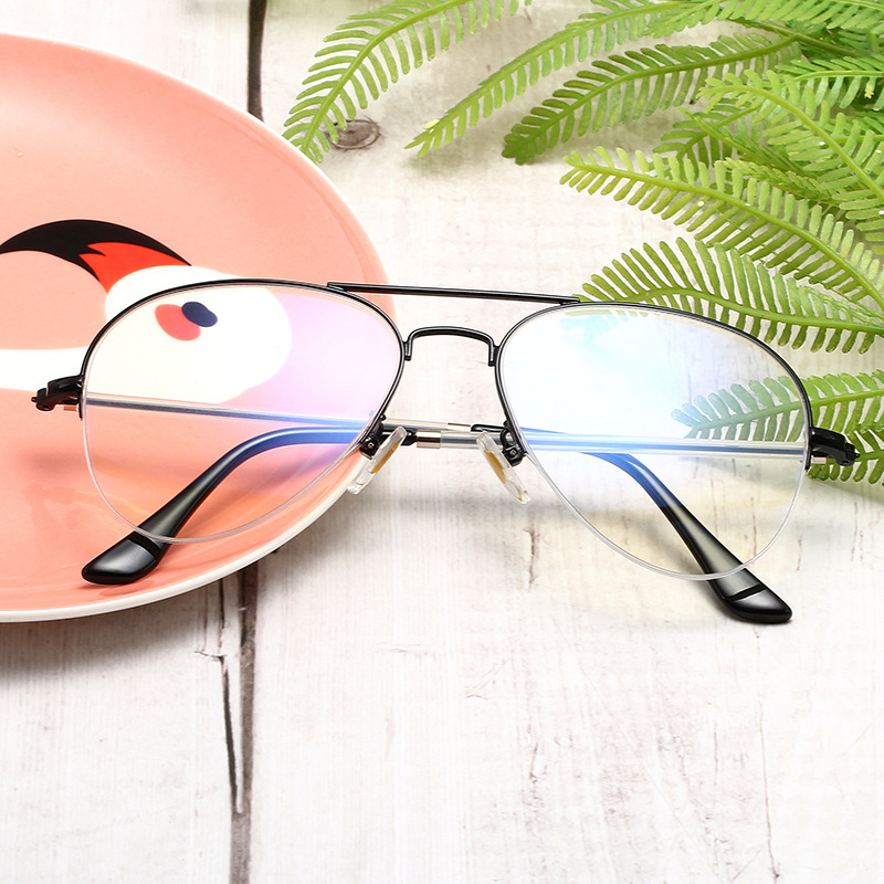 New Korean-style Retro Artistic Double-beam Half-frame Flat Mirror Men’s and Women’s Anti-blue Glasses Frame Myopia Frame 6025