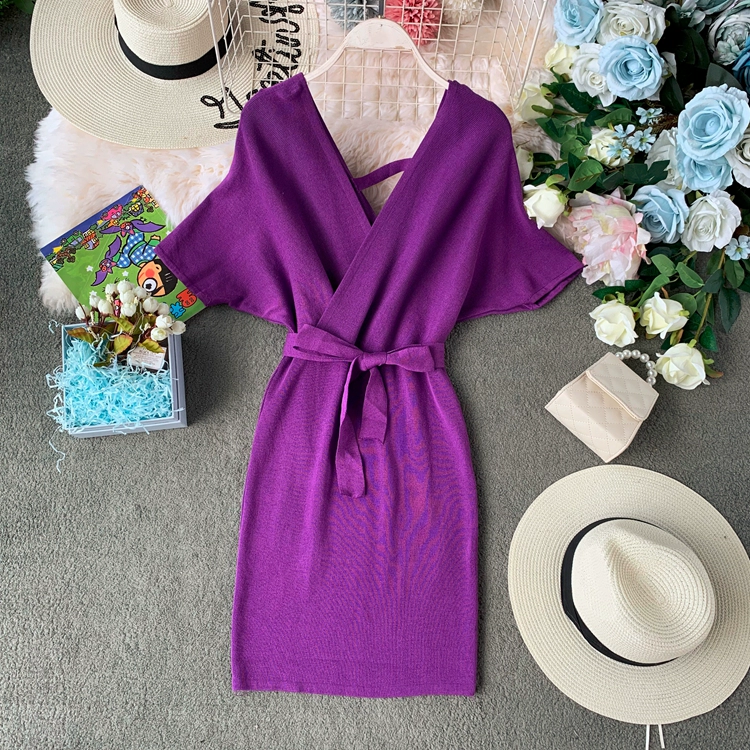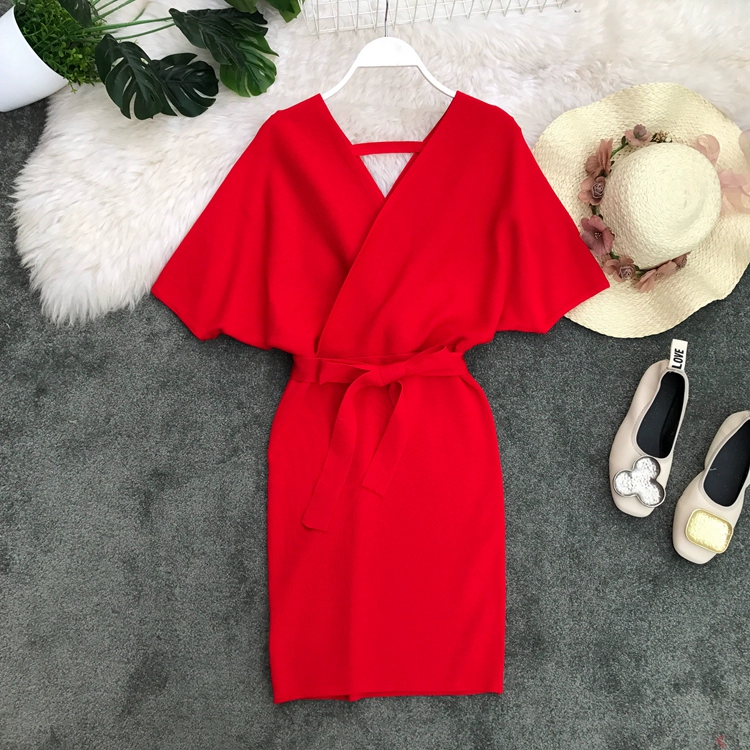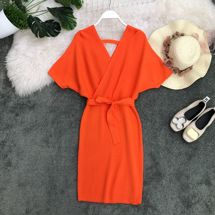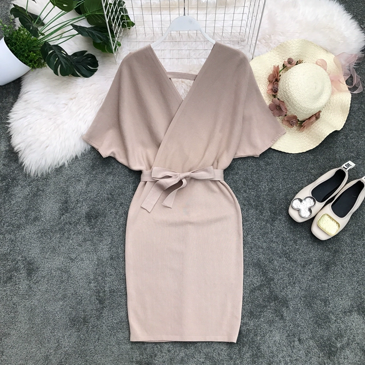 | nameOriginal | New Korean style v-neck waist slim knitted dress |