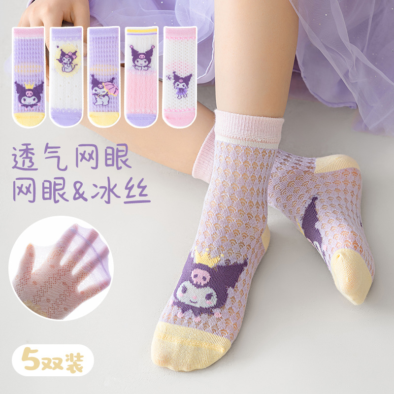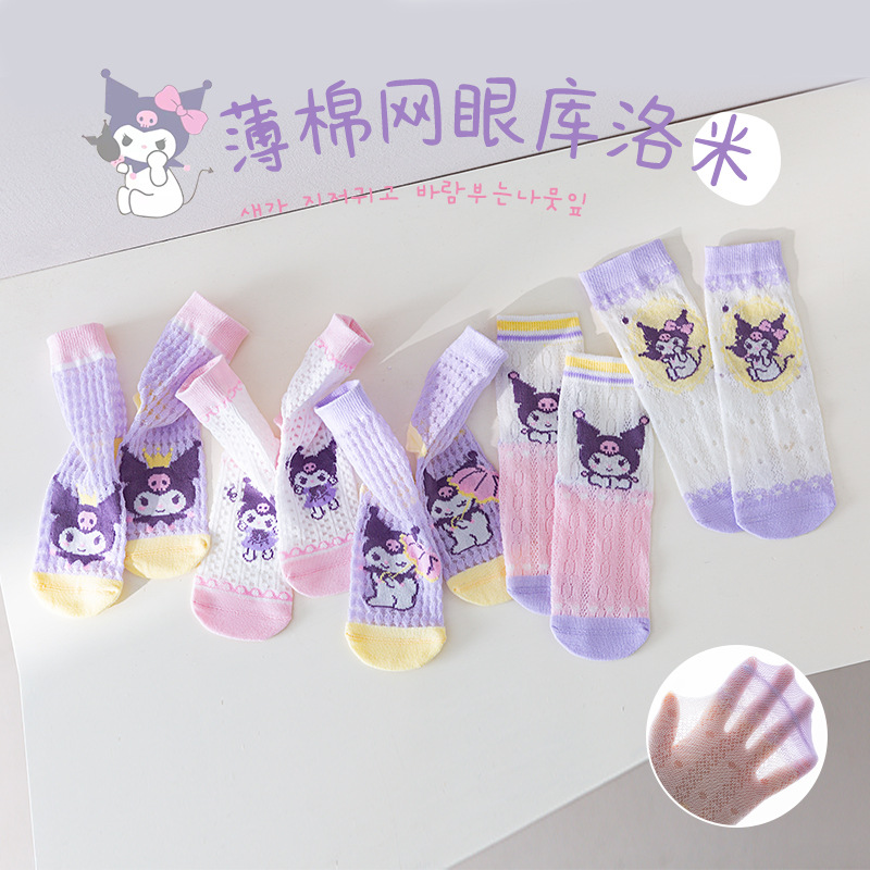 | nameOriginal | New Kulomi Cute High Elastic Mesh Breathable Cotton Socks Girls Comfortable Sweat-Absorbing Mid-Tube Socks Ice Silk Baby Socks |