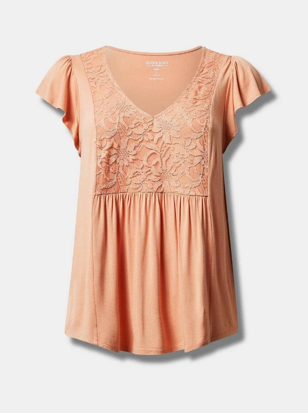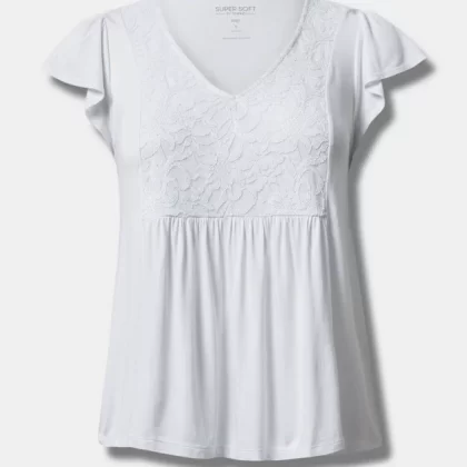 New lace stitching high elastic short-sleeved T-shirt babydoll