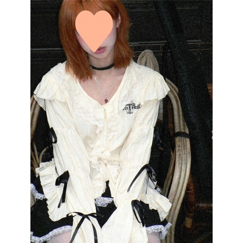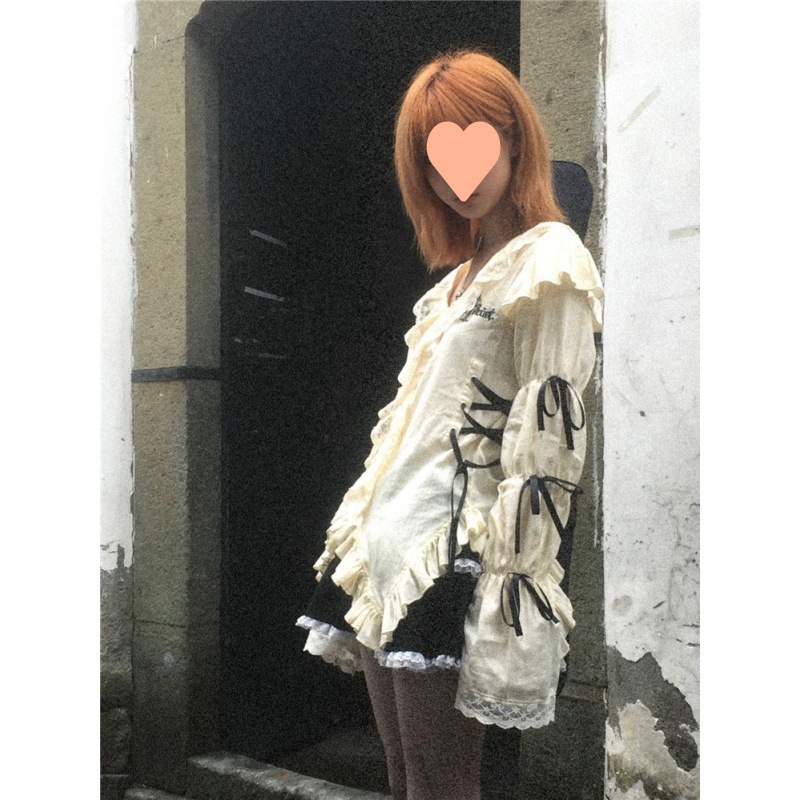 | nameOriginal | New Lace Wood Ear Retro Embroidered Bubble Sleeve Bow Shirt suit |
