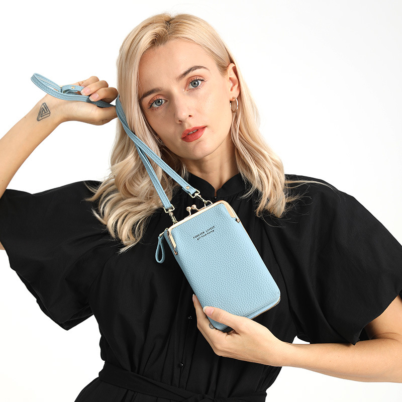 New Ladies Crossbody Bag Litchi Pattern Vertical Fashion Mini Mobile Phone Bag Fashion Hardware Lock Shoulder Bag for Women