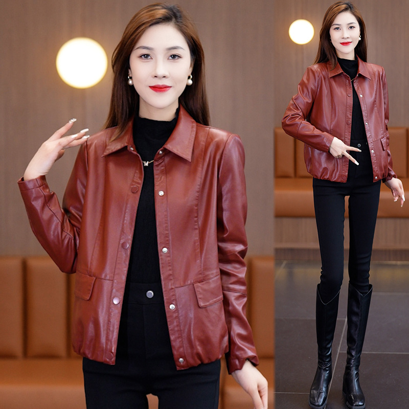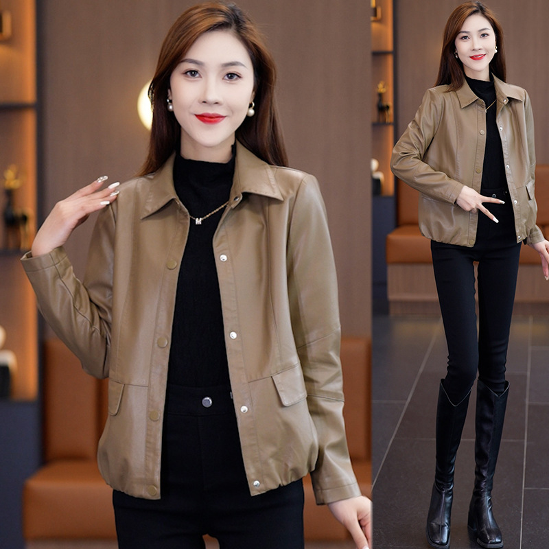 | nameOriginal | New leather coat fashionable elegant lapel 2024 spring and autumn zipper sleeve coat for women |