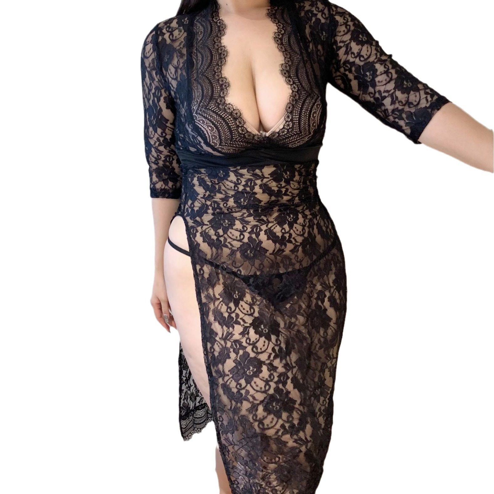 | nameOriginal | New lengthened plus size sexy lingerie sexy lace seductive dress hot side slit slim uniform pajamas |