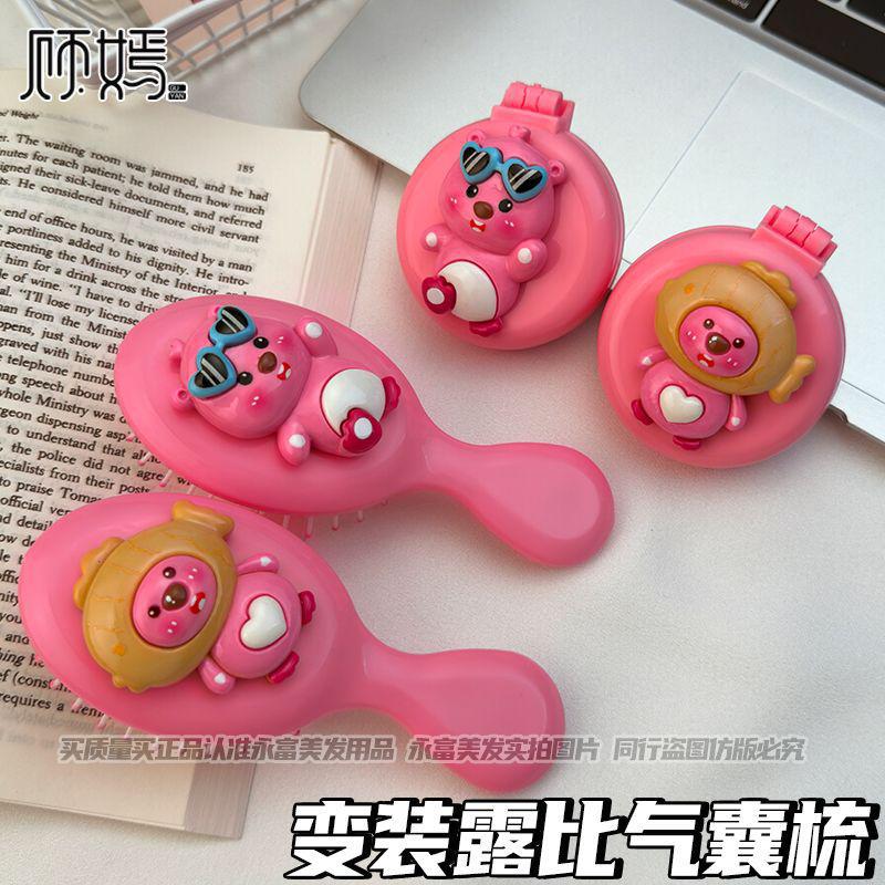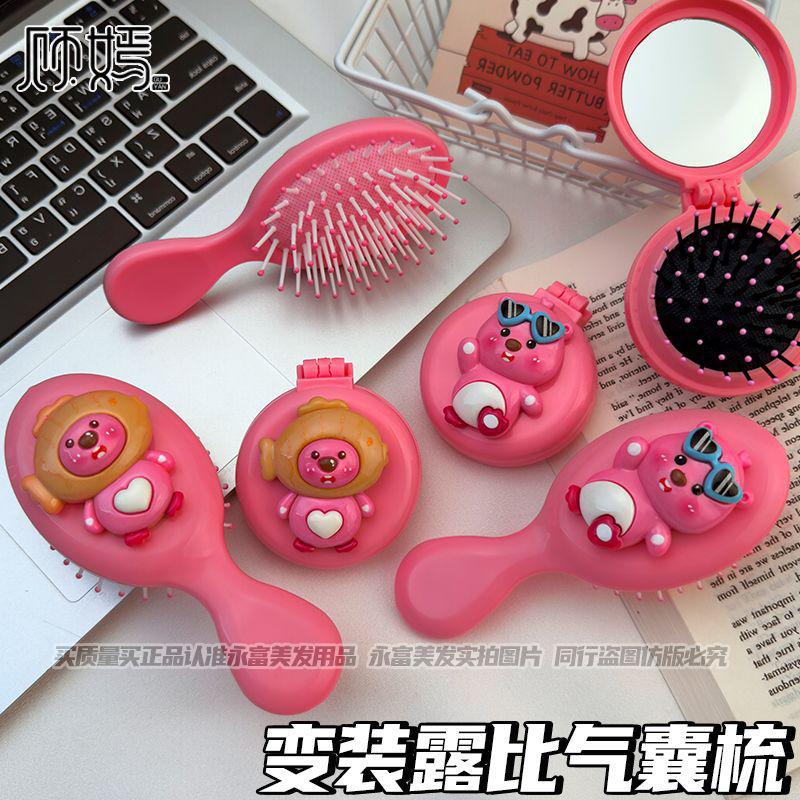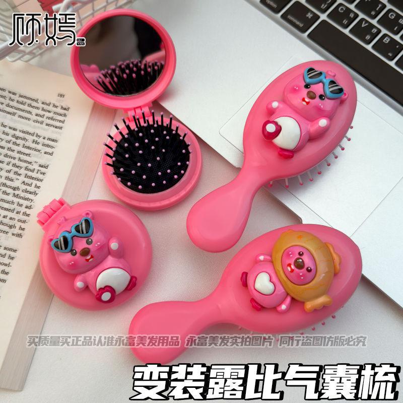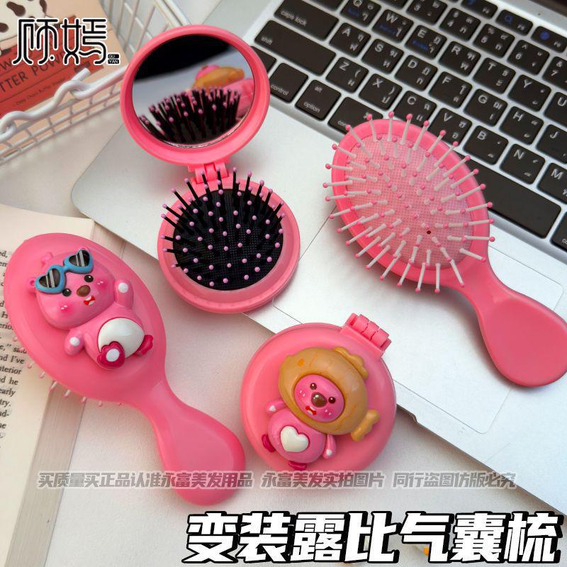 New Loopy Airbag Comb Small Portable Mini Cute Beaver Air Cushion Folding Mirror Comb Soft Girl Massage Comb
