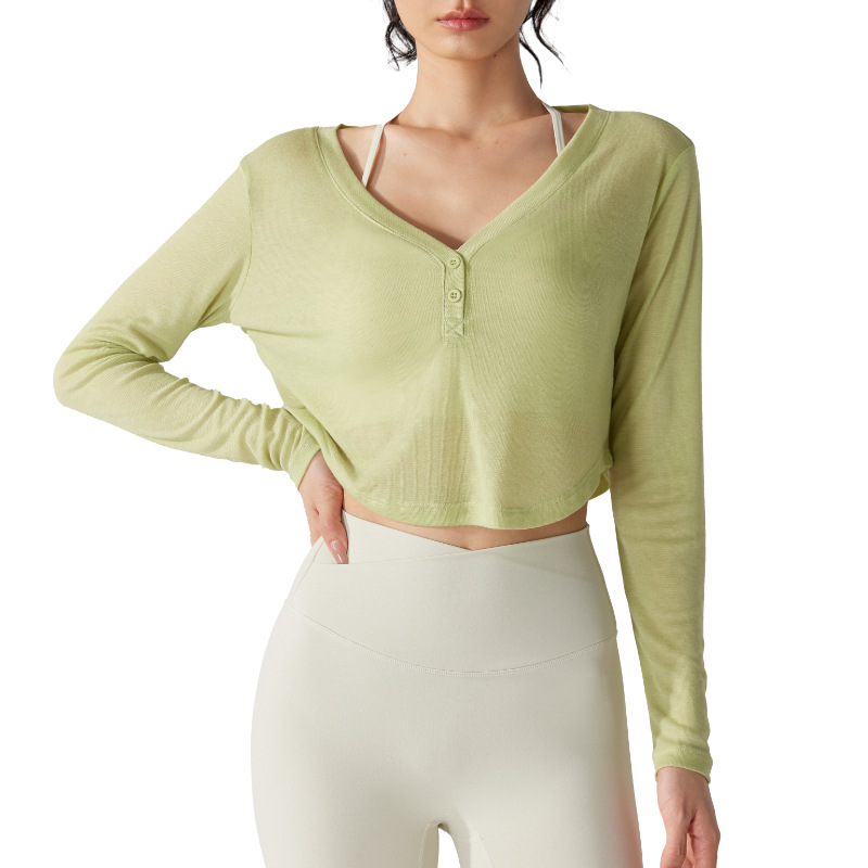 | nameOriginal | New loose V-neck yoga blouse long-sleeved T-shirt casual draping sports running fitness top lightweight hollow out |