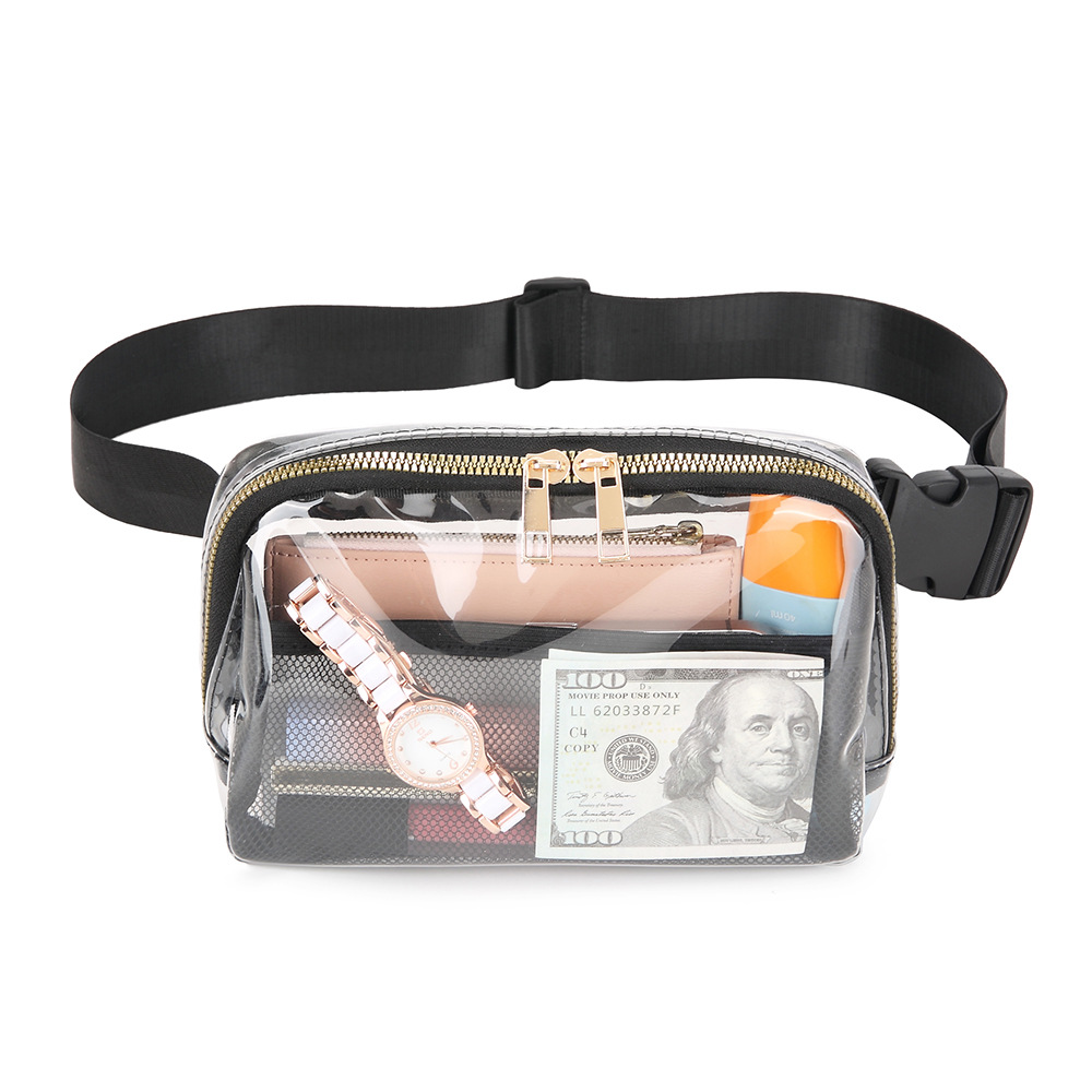 new lulu same style waterproof tpu waist bag stadium approved transparent wallet transparent adjustable belt bag,