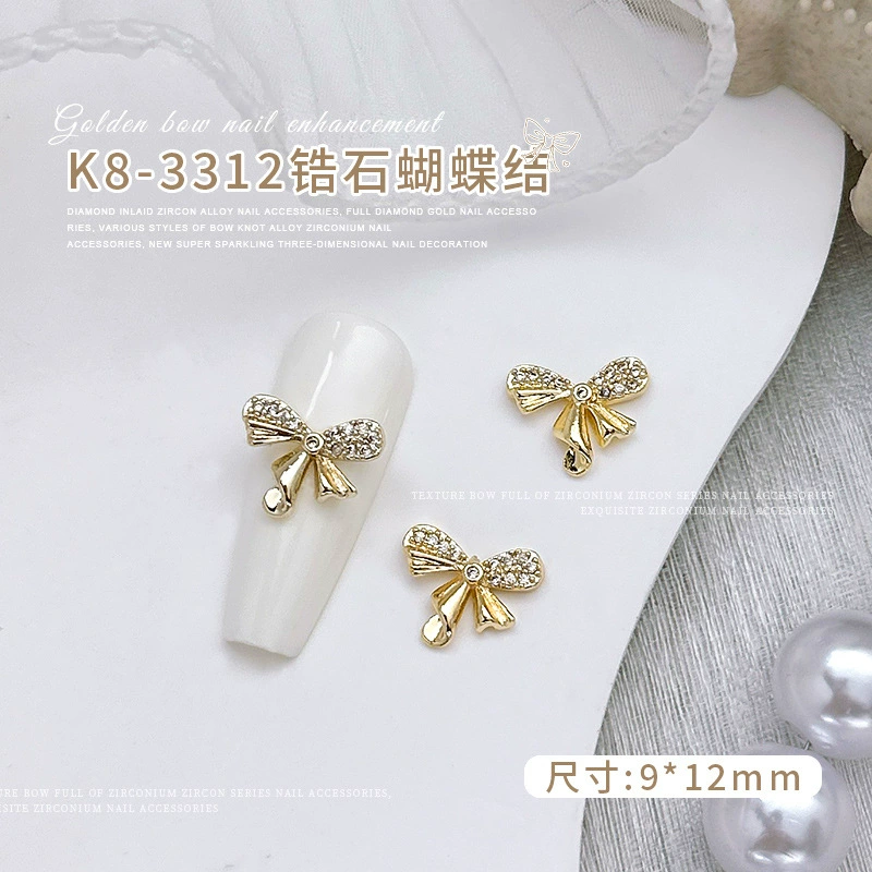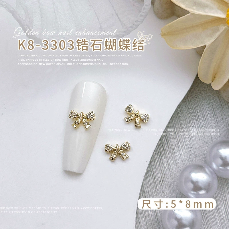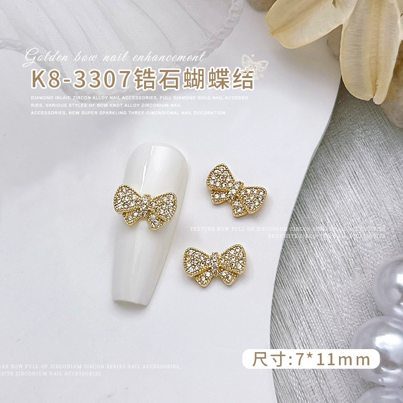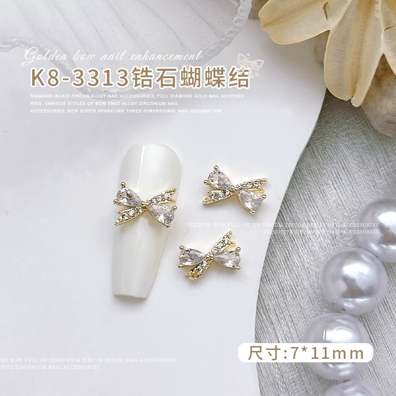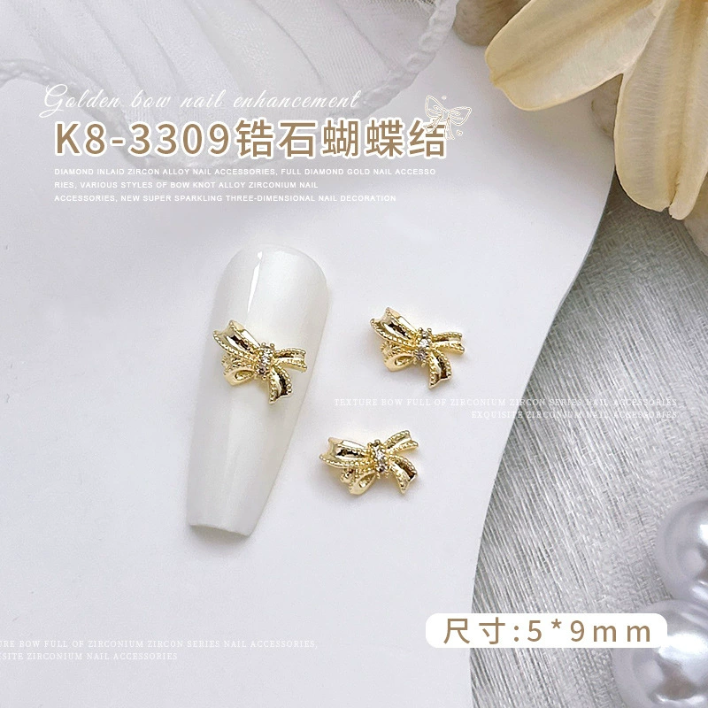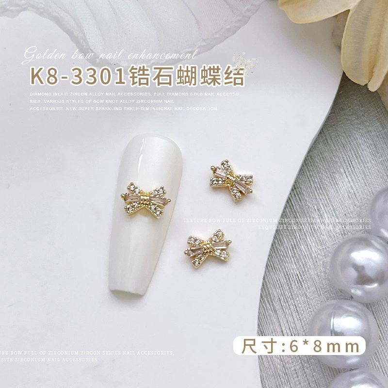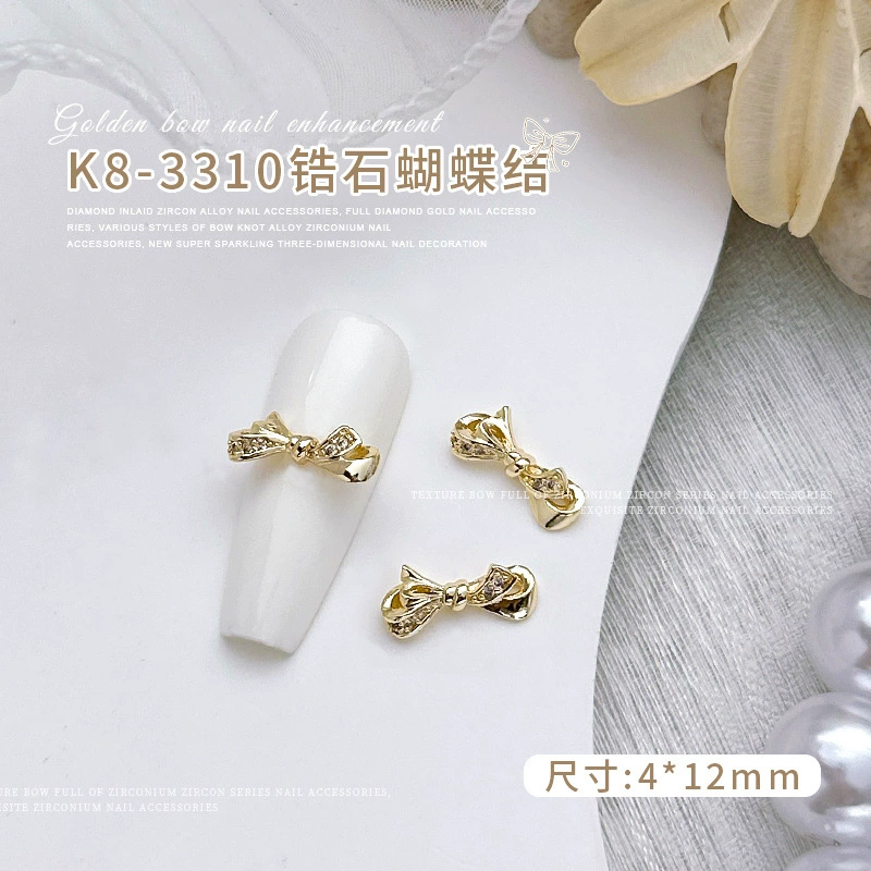 | nameOriginal | New manicure zircon bow jewelry color-preserving real gold plating non-fading metal floating bow tie nail diamond accessories |