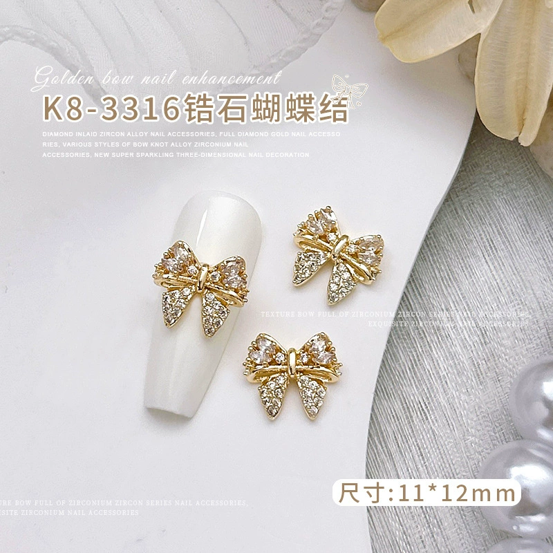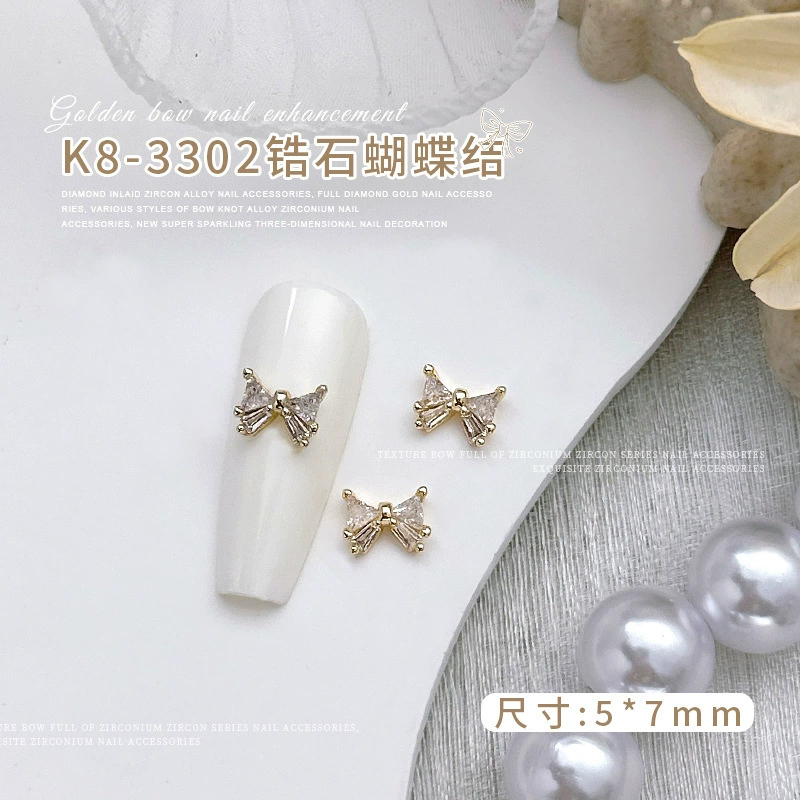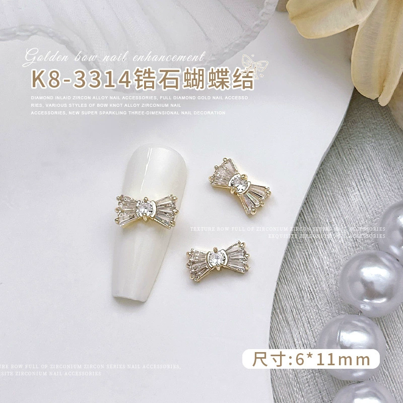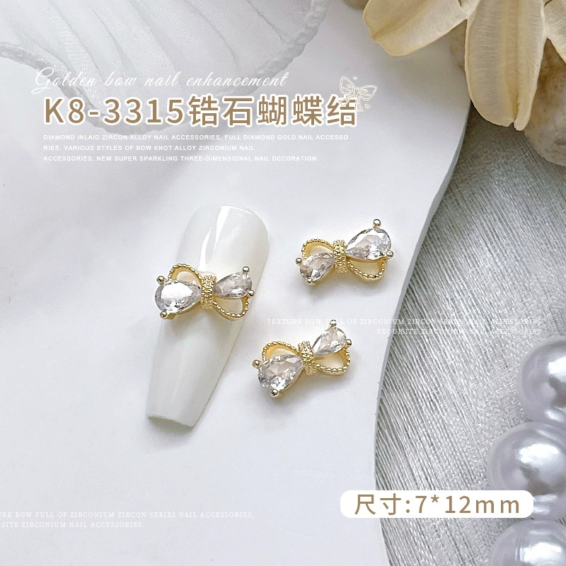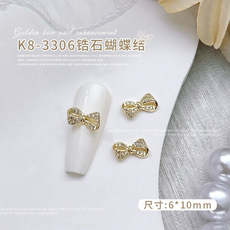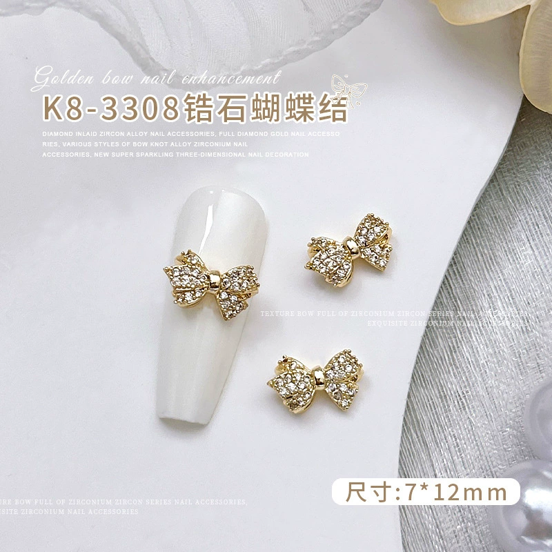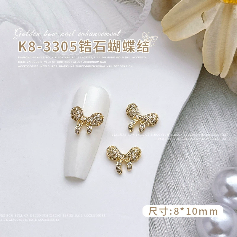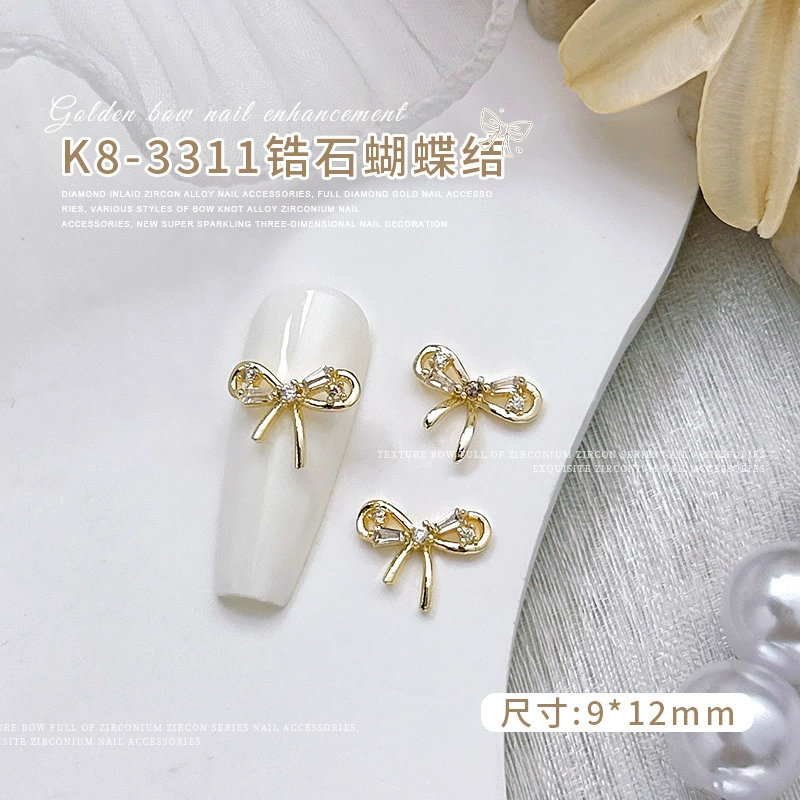 | nameOriginal | New manicure zircon bow jewelry color-preserving real gold plating non-fading metal floating bow tie nail diamond accessories |